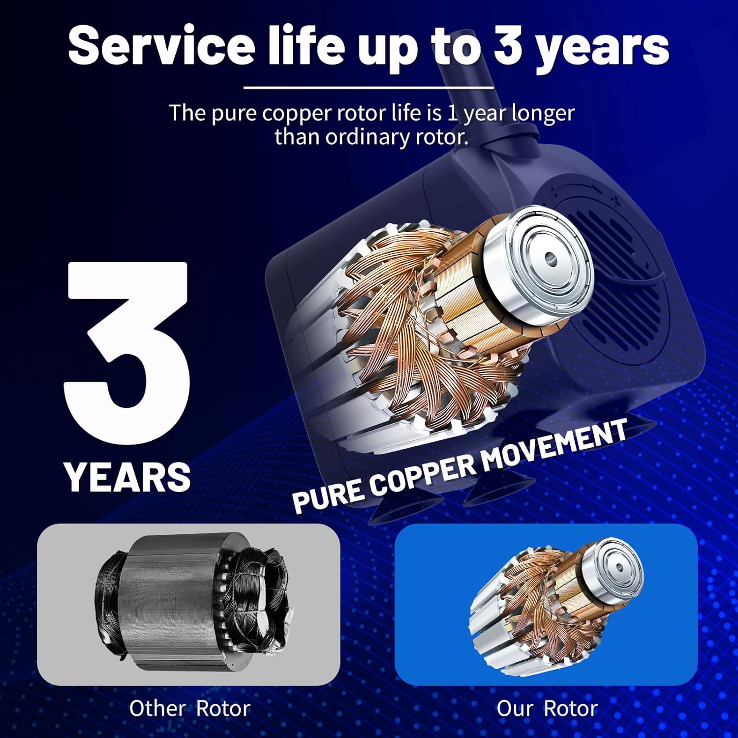 - 【ULTRA-QUIET DESIGN & LONG LIFE】In order to keep the pump quiet and have a longer life, increased the cost by using high quality rotor and copper,make the pump quiet & long life.