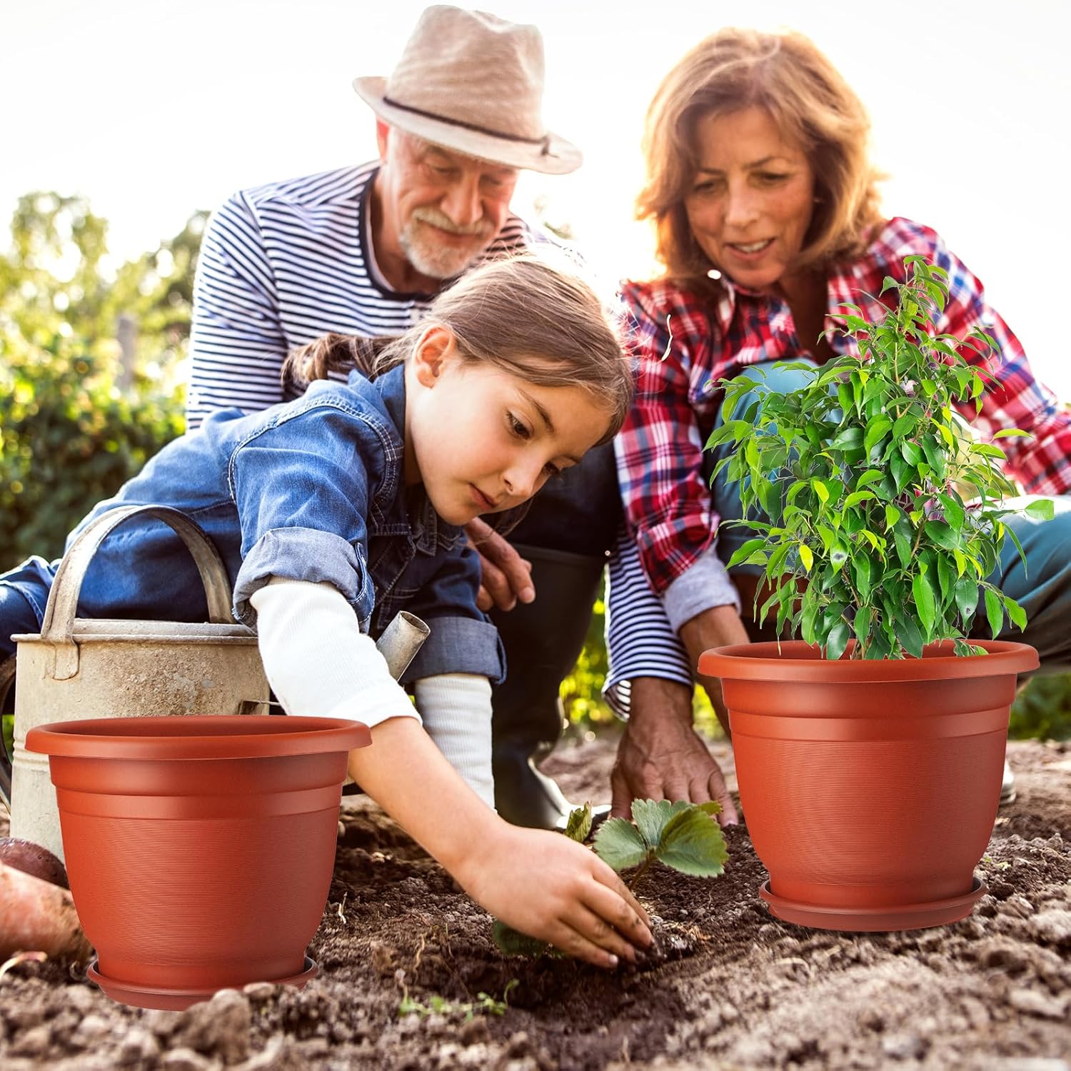 12 Pack 12'' Plastic Plant Pots Round Planter Pots with Saucer Tray Seedling Pots with Holes Seed Resin Plant Pot Starting Nursery Flower Container with Pallet for Garden Outdoor Indoor