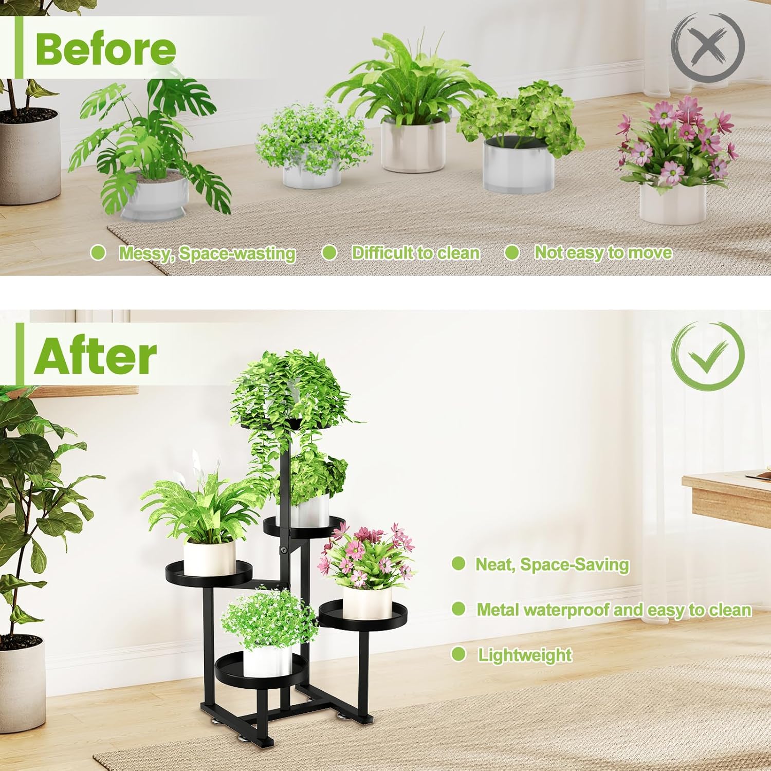 - Metal Plant Stand:Our 5 tier metal plant stand is made of heavy-duty iron material and painted with high temperature electrostatic paint to ensure that every weld is durable and corrosion-resistant; Perfect for outdoors, gardens and patios with this black plant stand