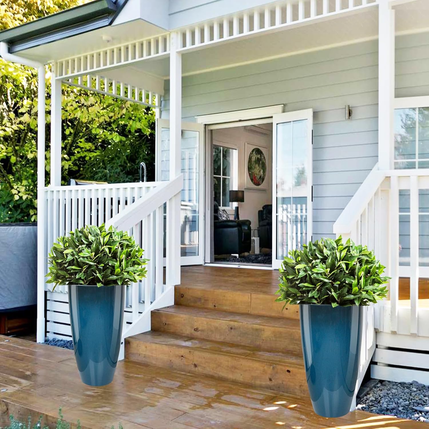 21 inch Tall Planter, Indoor Outdoor Planter Set of 2 Tall Outdoor Planters for Porch Large Planter Pot with Drainage Hole for Home Garden Front Door (Blue)