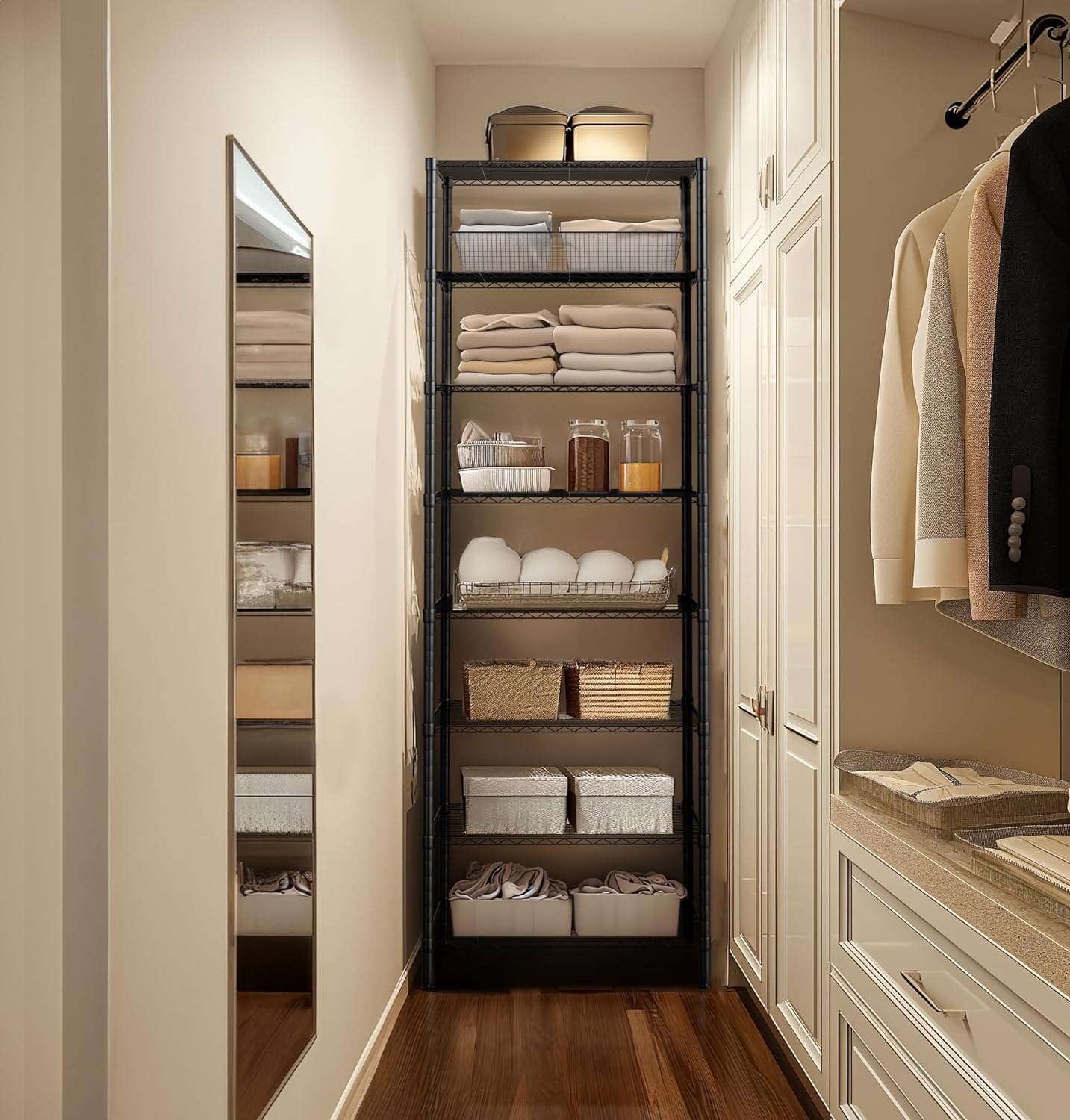 - UPDATE & OPTIMIZE - A lot of customers who bought our 6 tier wire shelving rack want to make the rack higher, so we have developed a new shelf which are 72 inches height and have 8 shelves, you can use all 8 shelves to maximize your storage space or two 4 tier units to make your storage space more flexible. Let's diversified storage and easy access in kitchen, office, garage and more.