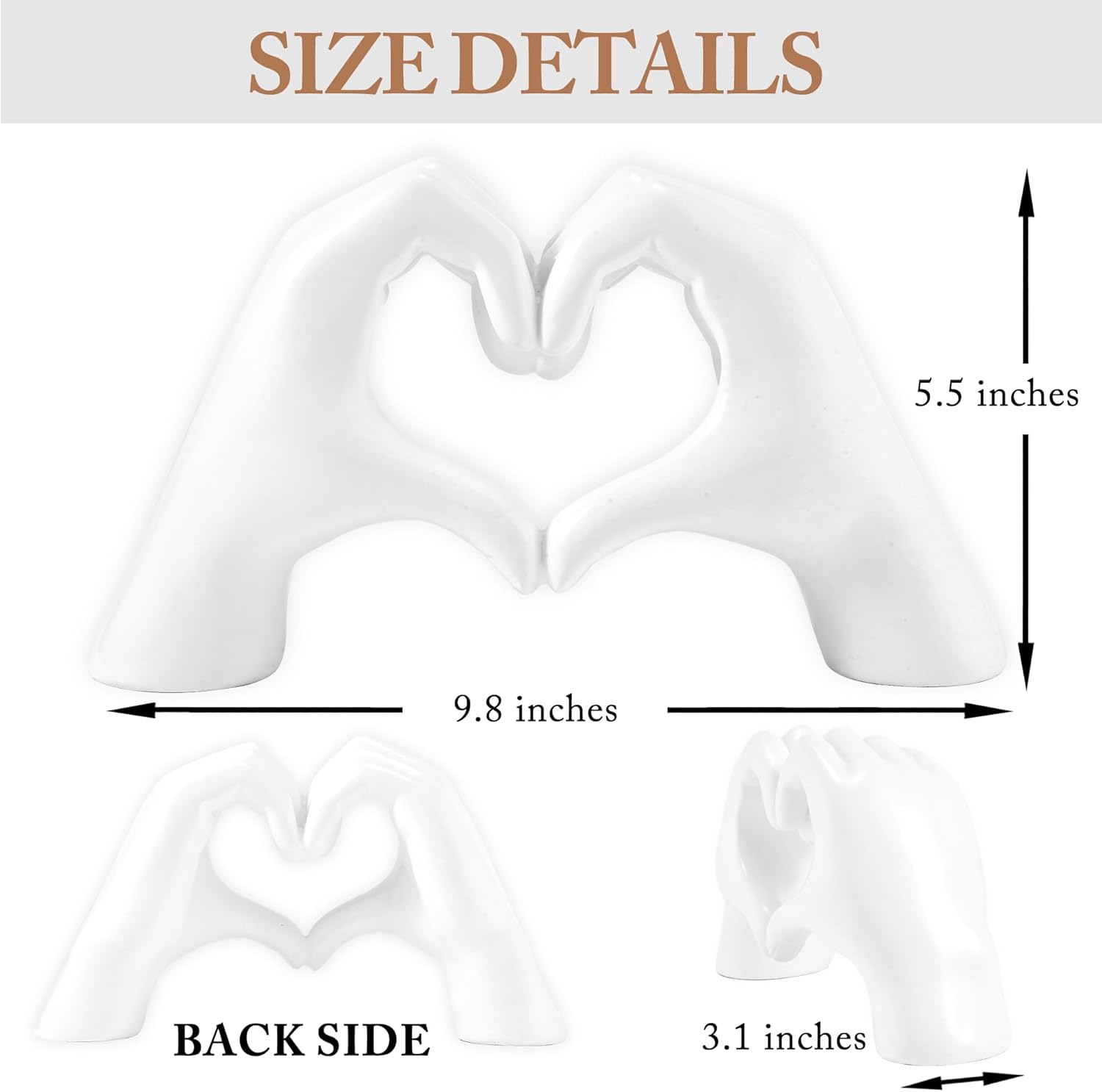 - [HEART HANDED SCULPTURE HOME DECOR]: Hand heart statue adopts sweet love gesture sculpture design; Nordic minimalist style resin handicrafts, love ornaments, modern love sign heart shape finger gesture statue, wedding for couple anniversary couple figurine. It is a whole pendulum and cannot be disassembled. Statue is perfect for home decor, room decoration, bedroom decoration, office decoration, living room decoration, hotel decoration, apartment decoration.