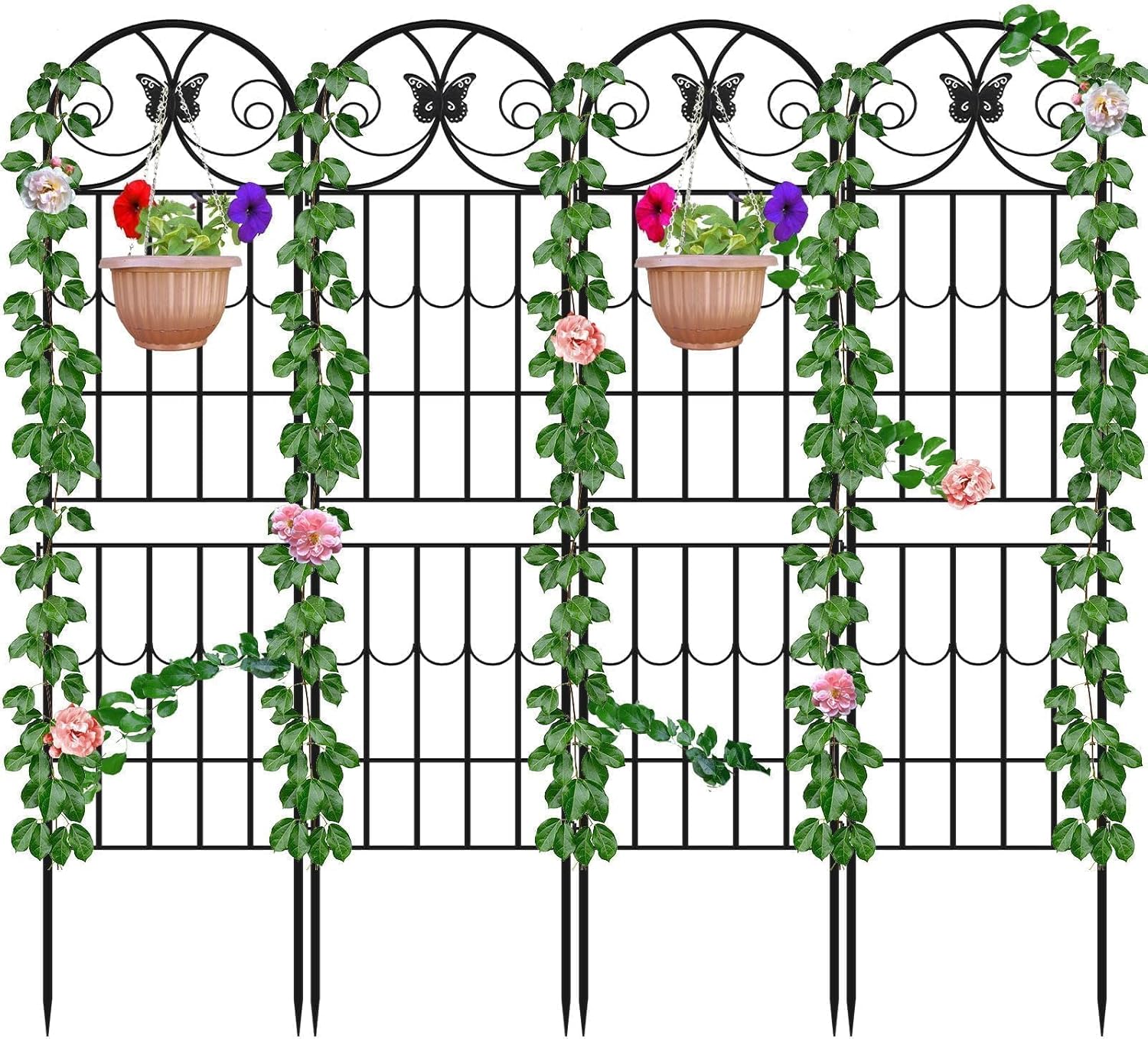 - 【Sturdy Garden Trellis】You will get set of 4, 87x20 inch plant trellis. Garden trellis is made of high-quality iron and anti-rust coating, which is not easy to rust, and the tube, with a 6mm thick, thicken and sturdy, is not easy to break and bend. You can freely use trellis for potted plants indoor/outdoor all year round without worrying about damaging.