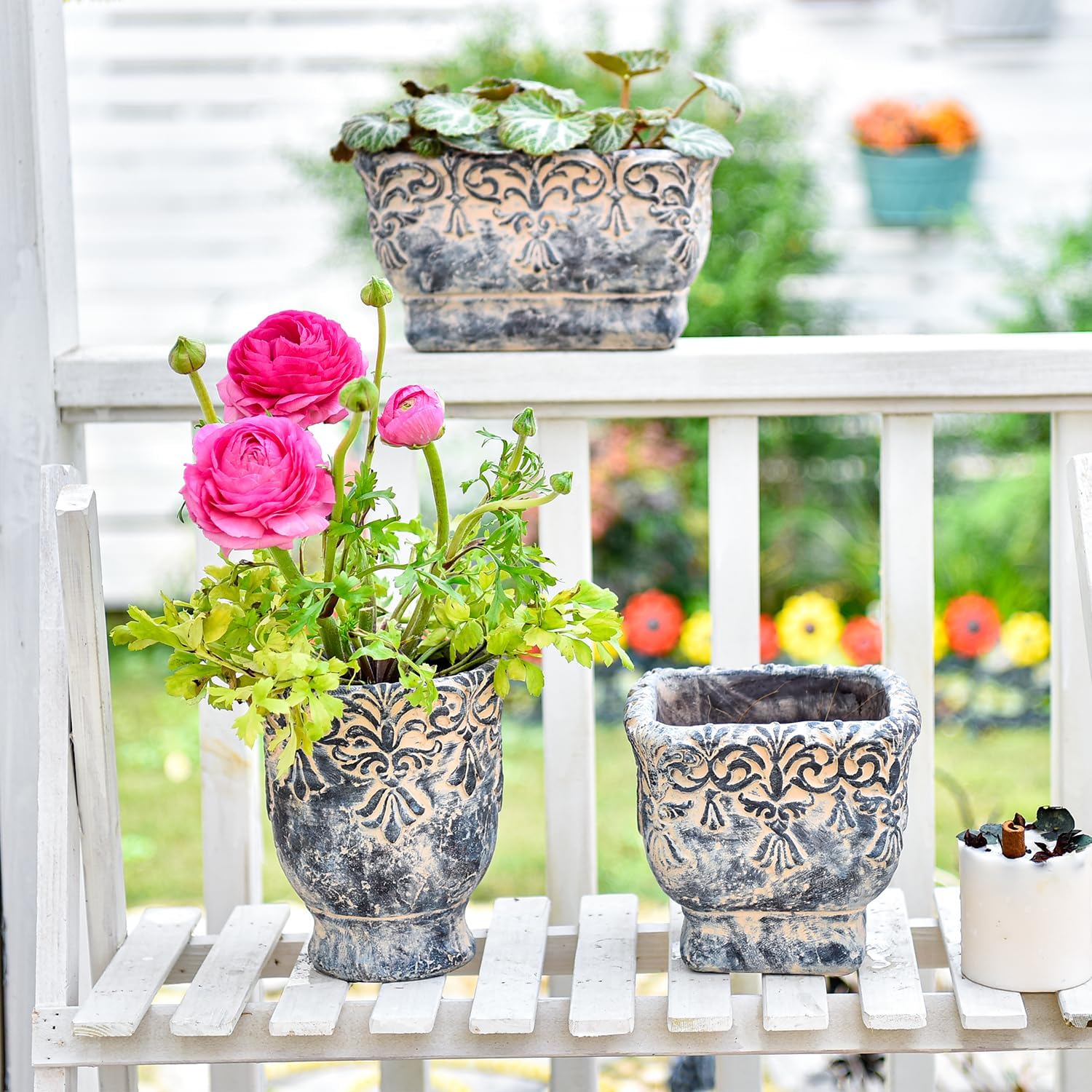 - Vintage Design: These decorative cement planters with intricate embossed design, the retro, natural finish goes well with mid-century or Bohemia decor, adding an enchanting touch to any space.