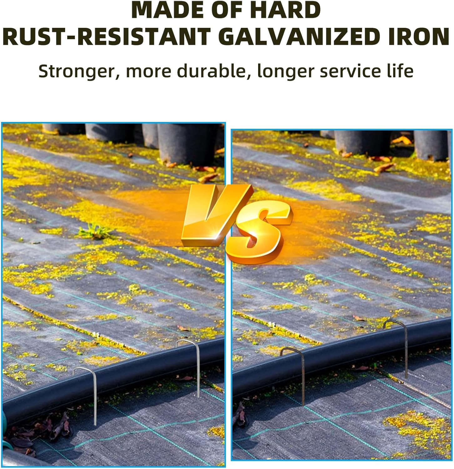 - 【Excellent Material】: Garden stake pins are made of high-quality galvanized iron, lightweight, durable, rust-proof, wear-resistant and not easy to bend, it can be reused many times. U-shaped design of landscape staples 6 inch, it can save you valuable time and frustration.