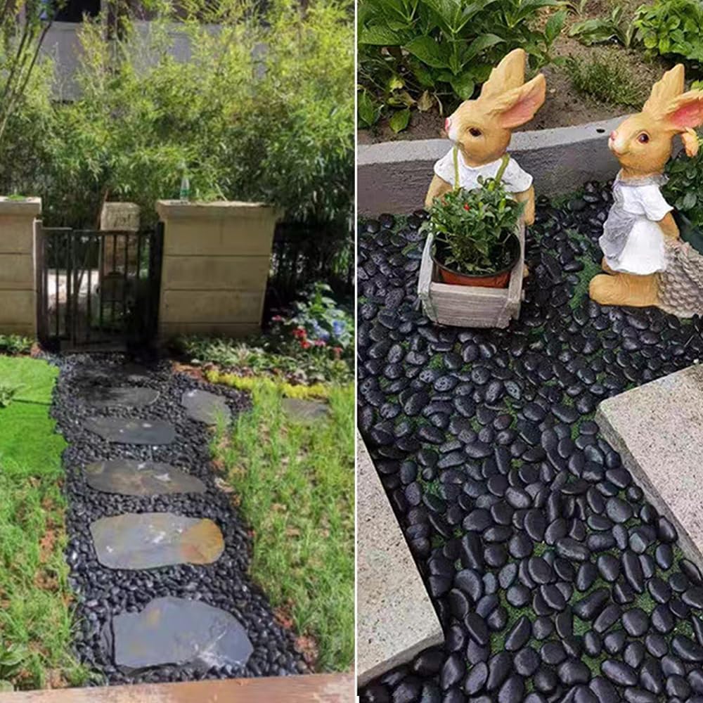 - Material: These black pebbles stones range in width approx from 0.8-1.6 inch, are scoured and polished by smooth river stones. Their surface are covered with wax to enhance color and shine, so you should take them with gloves