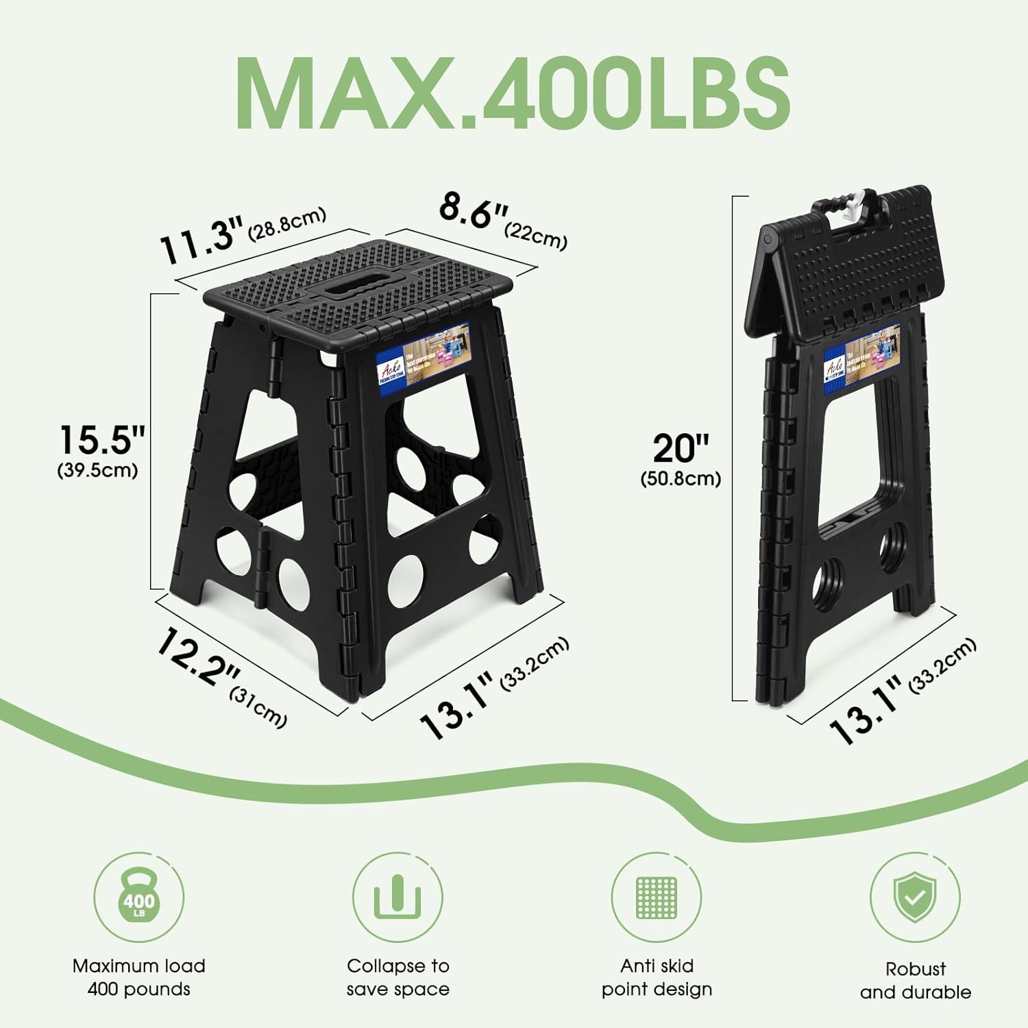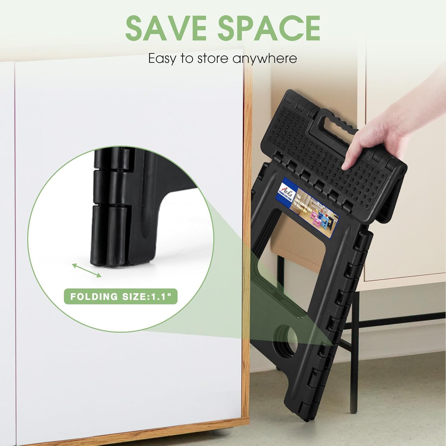 ACKO Folding Step Stool Foldable 16 Inch Stools for Adults and Kids, Plastic Stools Tall 400 lbs Capacity, Collapsible Stool for Kitchen Stepping Foot Stool with Handle, Dot Black,1 PC