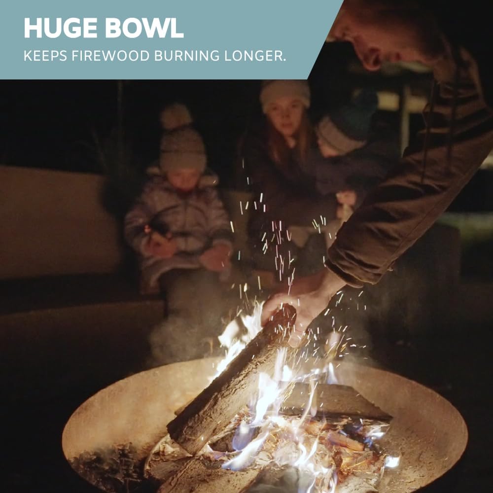 - DEEP FIREPIT BOWL - Enjoy longer lasting bonfire pit sessions with our outdoor fire pit. The deep fire pit allows you to load the fire bowl with more wood, saving you from refilling as often as you would with a shallow patio fire pit.