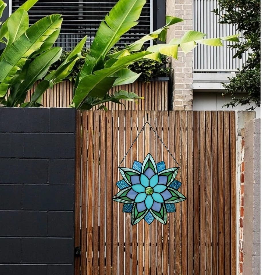 12 Inch Round Stained Glass Window Panel,Handmade Flower Stained Glass Window Hangings, Suncatcher Ornament for Home Décor