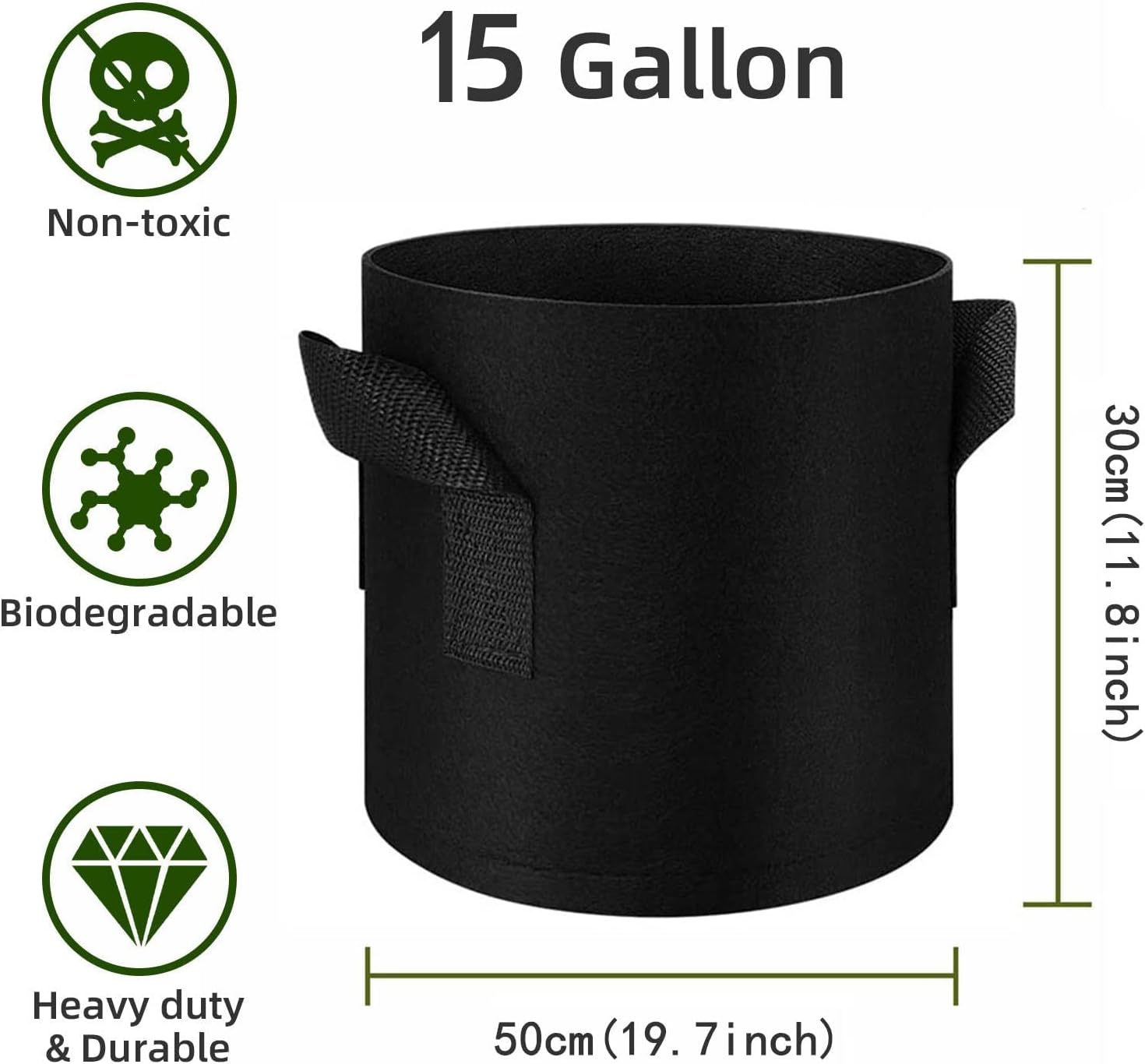 12-Pack 15 Gallon Plant Grow Bags, Thickened Nonwoven Flower Pots with Handles, Vegetable Planter Bags Containers, Cloth Planters for Garden Vegetable/Flower/Plant/Fruits Outdoor (Black)