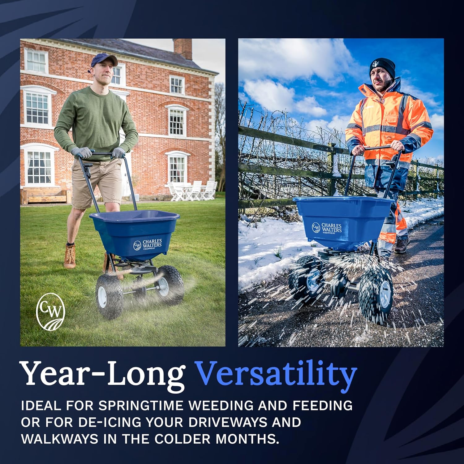 Charles Walters Equipment CW2000 Estate Style Broadcast Spreader for Spreading Fertilizer and Ice Melt on Lawns, Sidewalks, and Driveways, 65lb Capacity, 35" x 35"