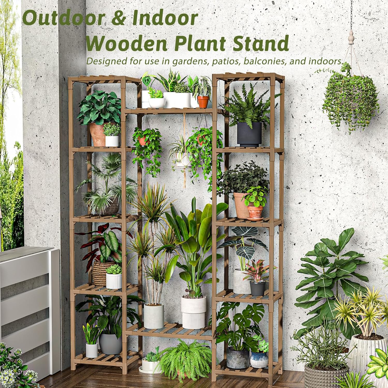 Plant Stand Indoor Outdoor 62.2“ Tall Plant Shelf Large Tiered Flower Stands for Multiple Display Wood Hanging Planter Holder for Living Room Garden Balcony Patio Decor