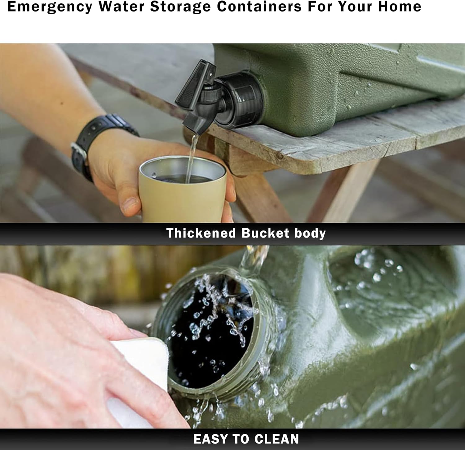 - Emergency Preparedness and Daily Use - This freshwater container is widely used for outdoor activities, camping, tailgating parties, picnics, hiking, backyard barbecues or other outdoor activities. Also Enables you quickly and safely store all the water your family needs in the event of an emergency or natural disaster