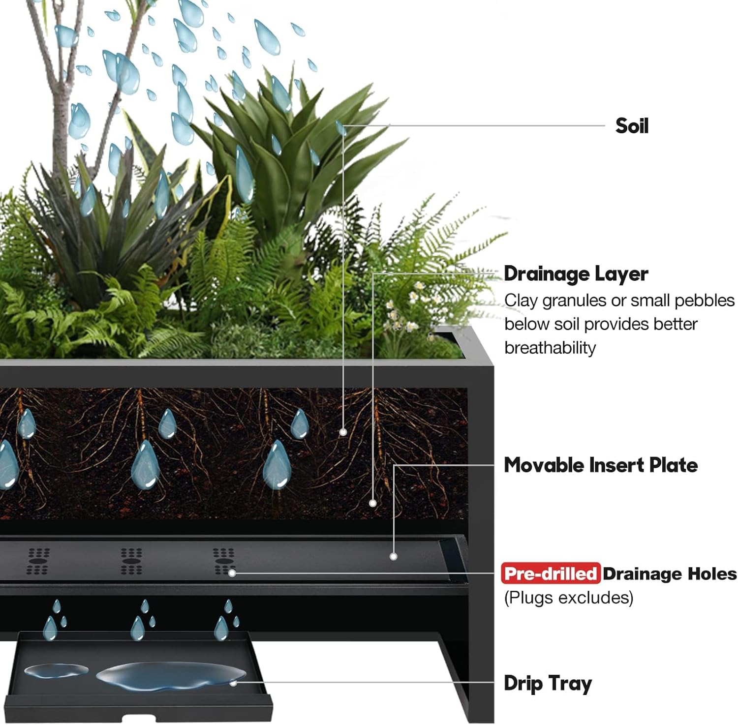- OPTIMAL DRAINAGE: This planter pot has a built-in removable shelf; The drainage holes on the shelf allow excess water to drain; Also equipped with drip tray, suited for preventing spillage in interior applications