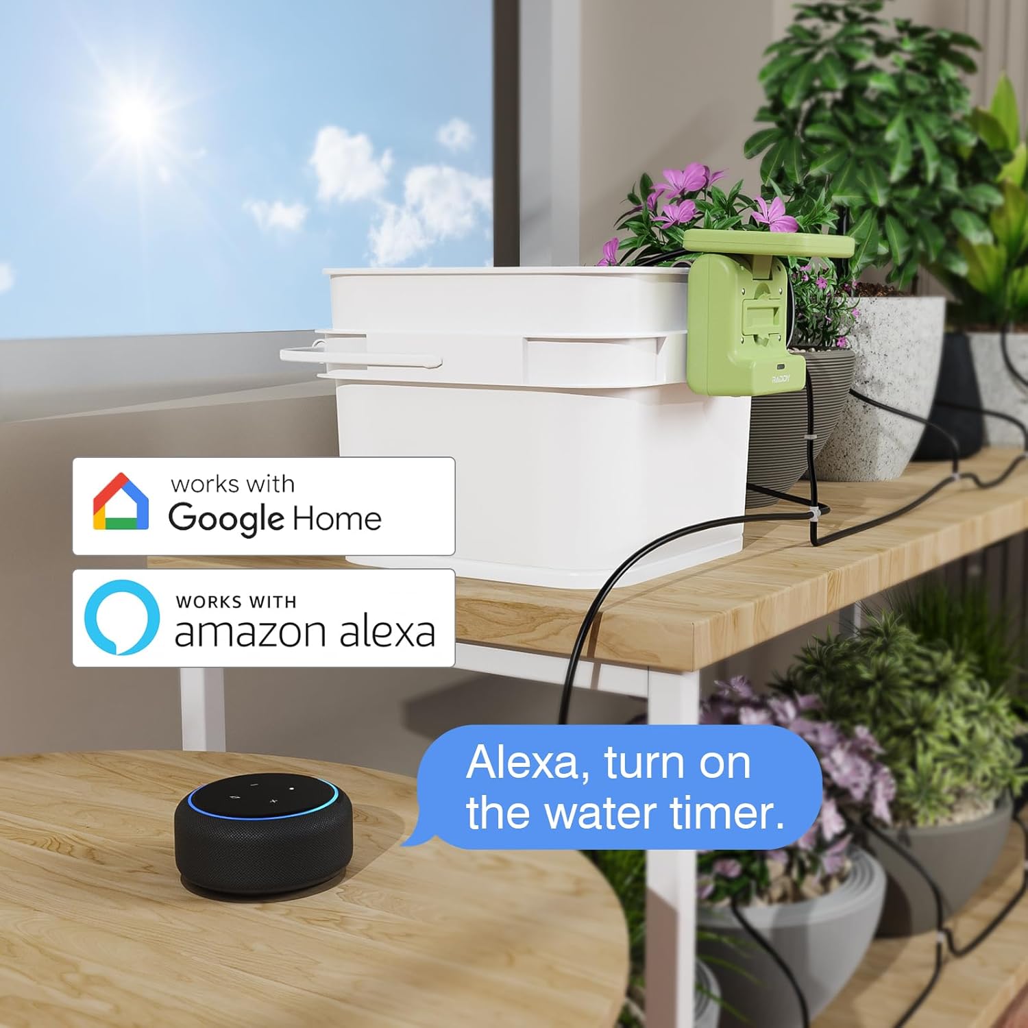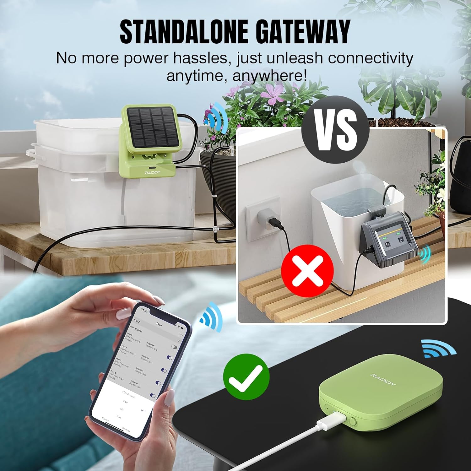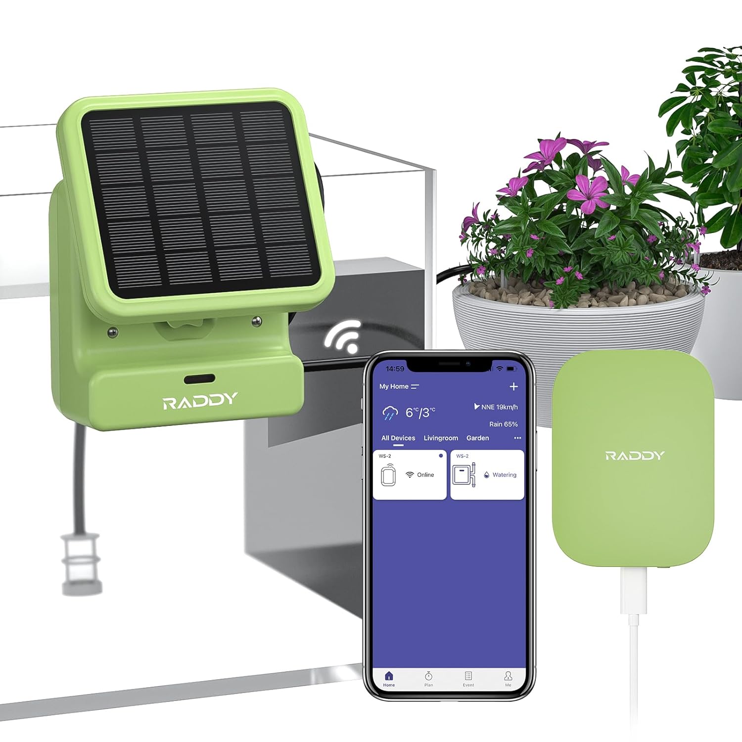 Raddy WS-2 Wi-Fi Automatic Watering System, Solar Drip Irrigation System, APP Control with Flexible Mini Hub, Water Shortage Alert, 2600mAh Built-in Battery, Easy DIY for Potted Plants, Balcony