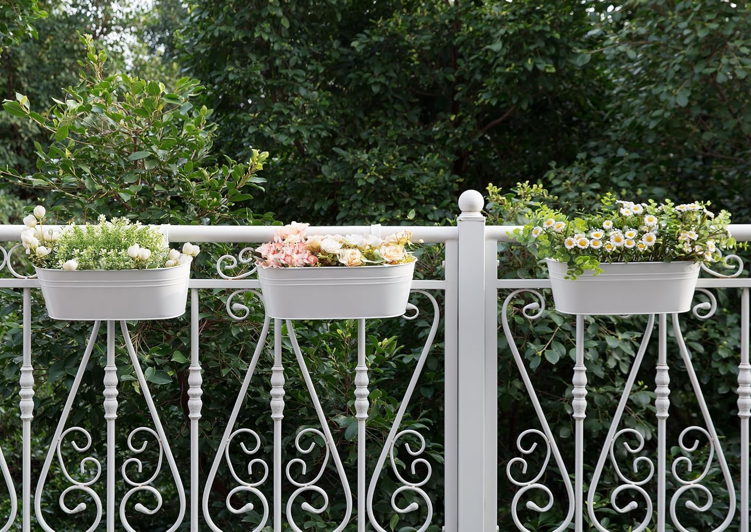 - Balcony Rail Planter: Rectangular planter was designed to maximize inside growing space allowing dirt and roots to grow strong and deep.This special design can be hung on the balcony, window, garden,railing, anywhere in the room,also can be used as desktop.