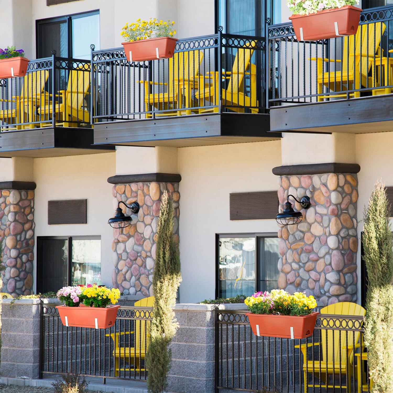 Deck Railing Planter Boxes, 6 Pack Deck Hanging Planters for Railing, 16.9 Inch Balcony Planters Railing Hanging, Railing Hanging Planter, Red and White