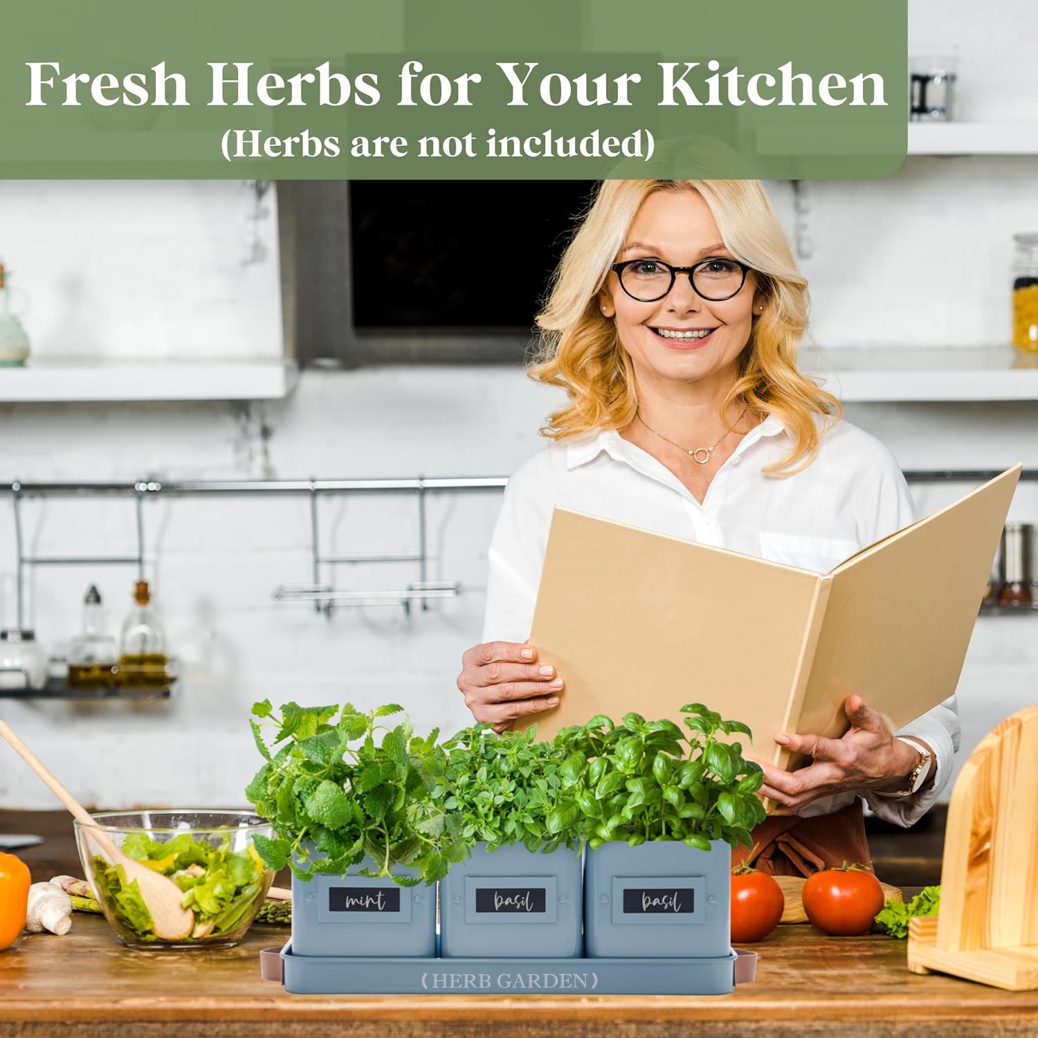 PERFNIQUE Indoor Herb Garden, Herb Garden Planter Set with Tray, Farmhouse Indoor Plant Pots, Windowsill Herb Garden with Drainage(Planter only) for Indoor/Outdoor, Window Pots(Sky Blue)