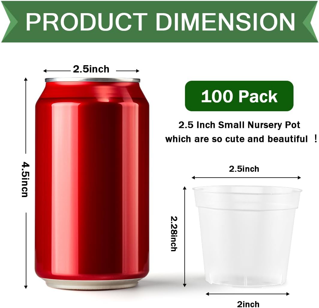 - 【What You Get】100PCS 2.5 inches diameter seeding pots, height is 2.36inch, bottom is 2 inch. Each piece is very small but enough for seeds starting or small plants like succulent to grow. Good Drainage holes for roots breathable better.