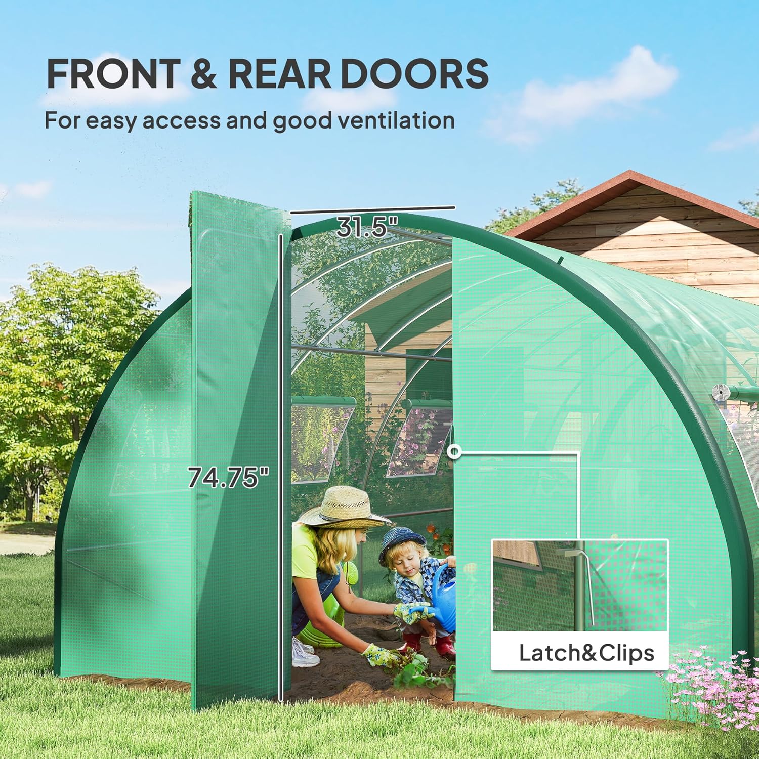 Outsunny 25' x 10' x 6.6' Walk-in Tunnel Greenhouse with Upgraded Structure, Outdoor Green House with 2 Hinged Doors, 10 Mesh Windows, Gardening Plant Warm House Tent, Green