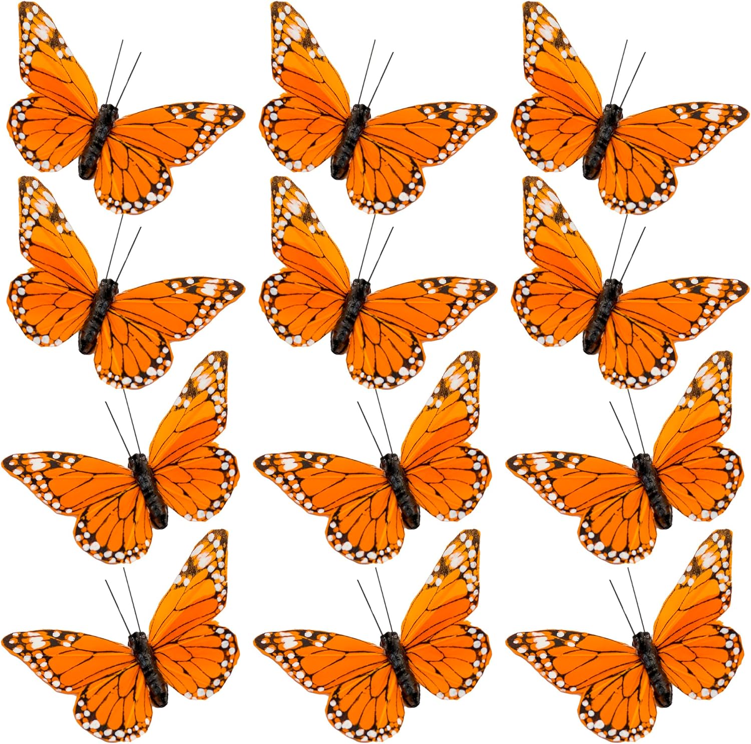 Cartanfill-Monarch Butterfly Decorations, 12PCS Feather Butterfly Decorations Set with Clip for Wedding Party Home Decor