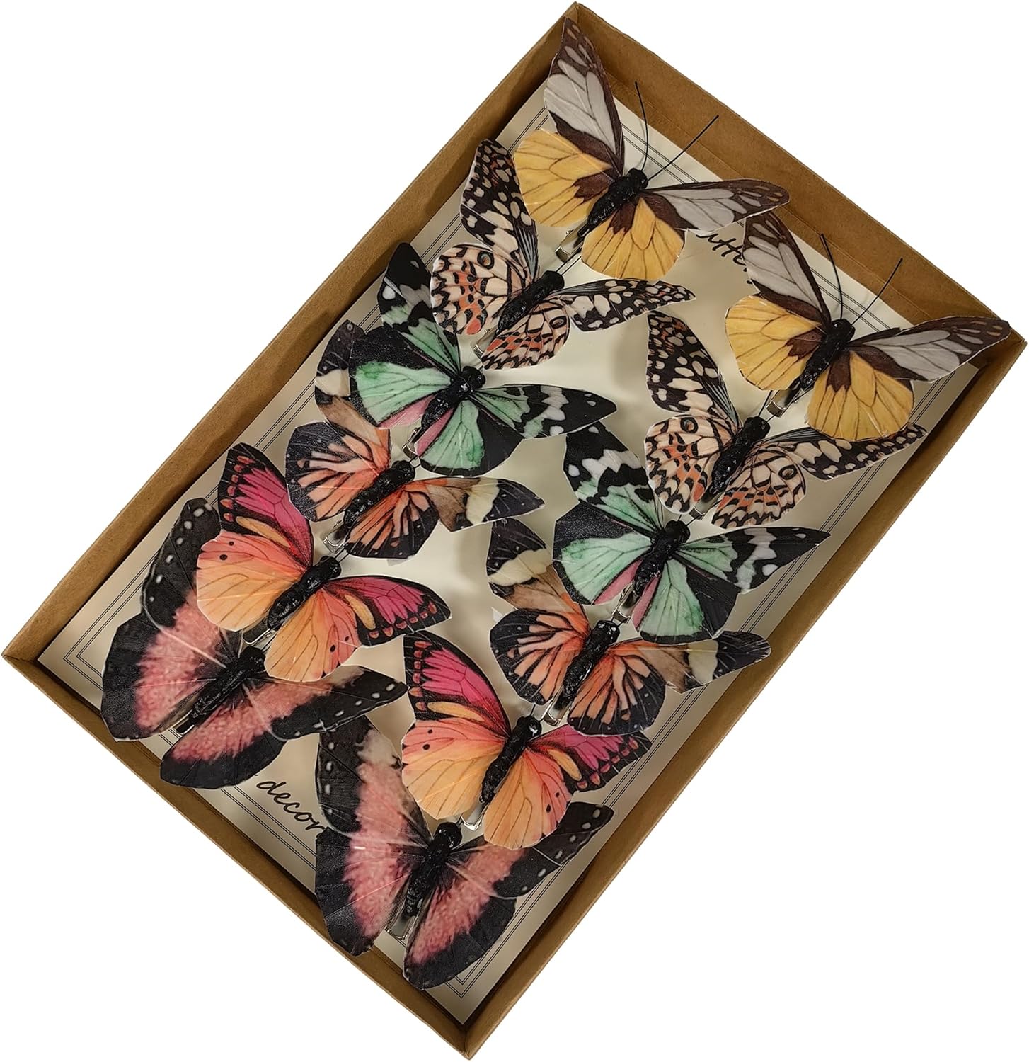 Cartanfill- Artificial Feather Simulation Butterfly Party Decoration Set, a Set of 12 Pieces with Clips, Used for Home Decoration in 12 Colors.… (B Clip)