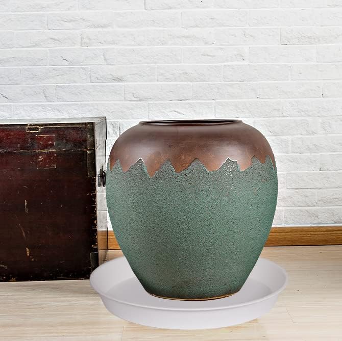 4 Pack of 19 inch Plant Saucer, 2.7" Depth Tray, Large Deep Garden Plastic Flower Planter Plant Trays for Indoors Outdoor Bath Bath (19", Creamy White)