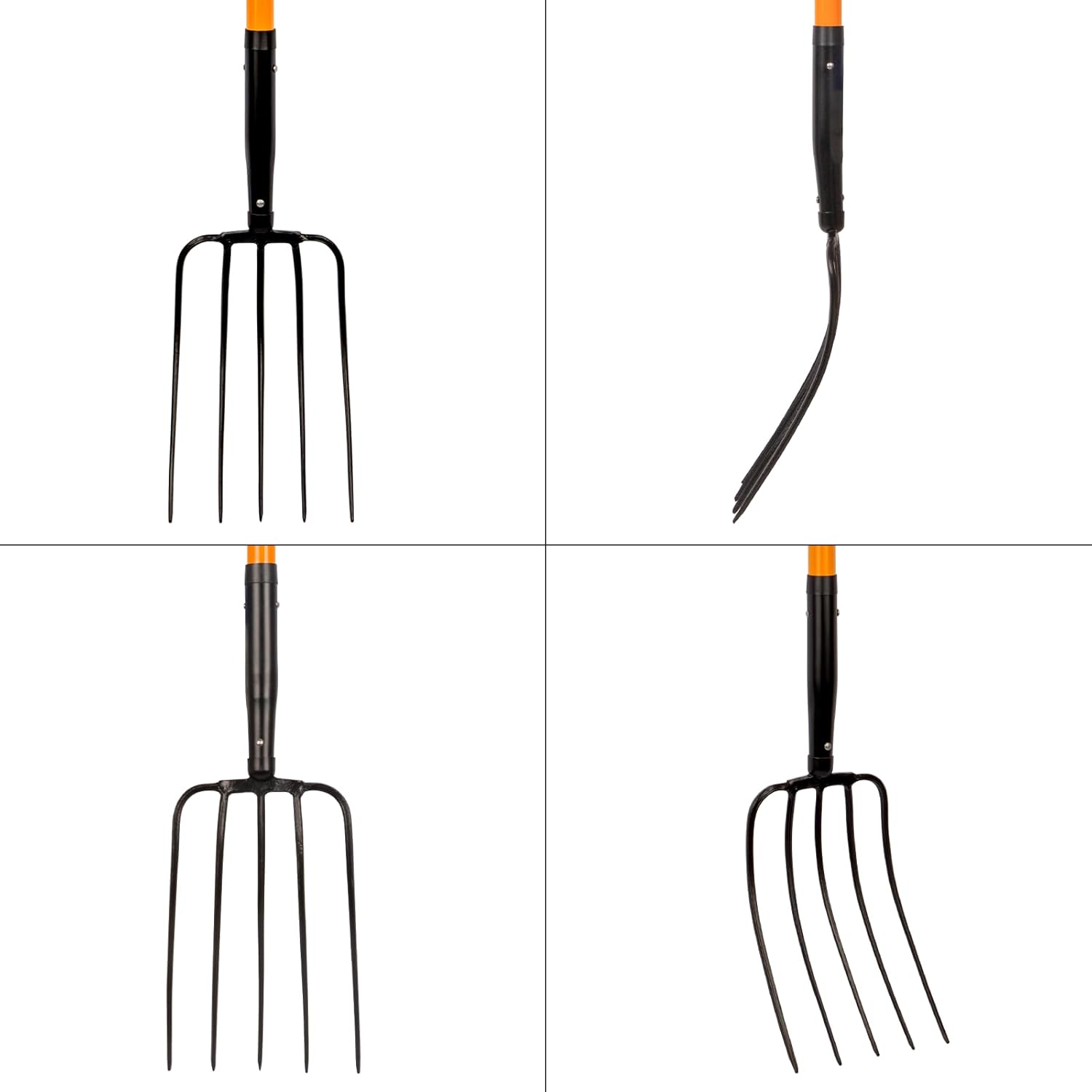 - Special Non-Slip Handle: The pitchfork come with thickened fiberglass handle that are lightweight and strong enough to resist breaking, and 2 non-slip grips on the handle to provide a comfortable and firm grip and leverage.