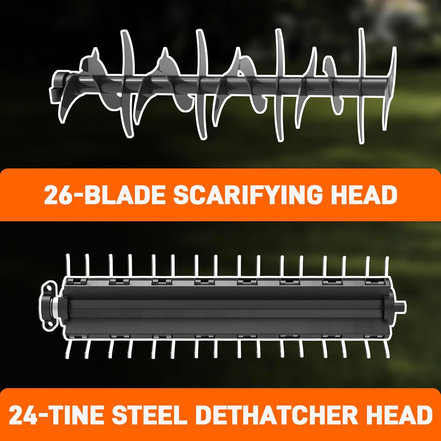 - DETHATCHER FEATURES: The lawn dethatcher cylinder is equipped with 24 spring steel raking tines, each 1.5 MM thick, providing thorough dethatching at a convenient 0.4-inch height; Replace your thatch rake and get the job done more quickly