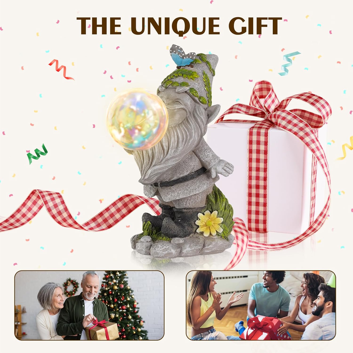 - Adorable & Vivid Gnome: Gnome statues adorned with cute butterflies and small flowers with bright colors. Let the lovely gnomes light up your garden, protect your home and bring you luck. Dimensions: 3.94''(W) x 6.8''(D) x 8.3''(H)