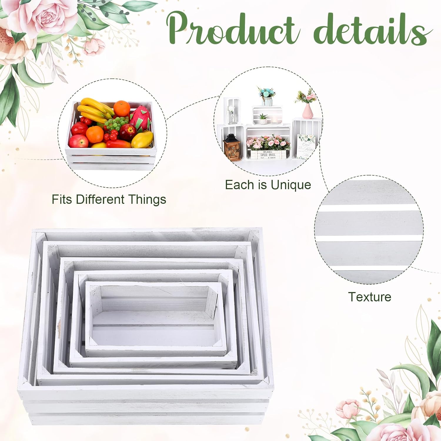 - Versatile Functionality: these stackable crates aren't just delightful in appearance; They're also efficient in function; Whether it's a wedding or just everyday home storage, these crates can adapt to any setting; Their universal charm fits into any room or occasion in your house, conveniently satisfying your decoration and storage requirements