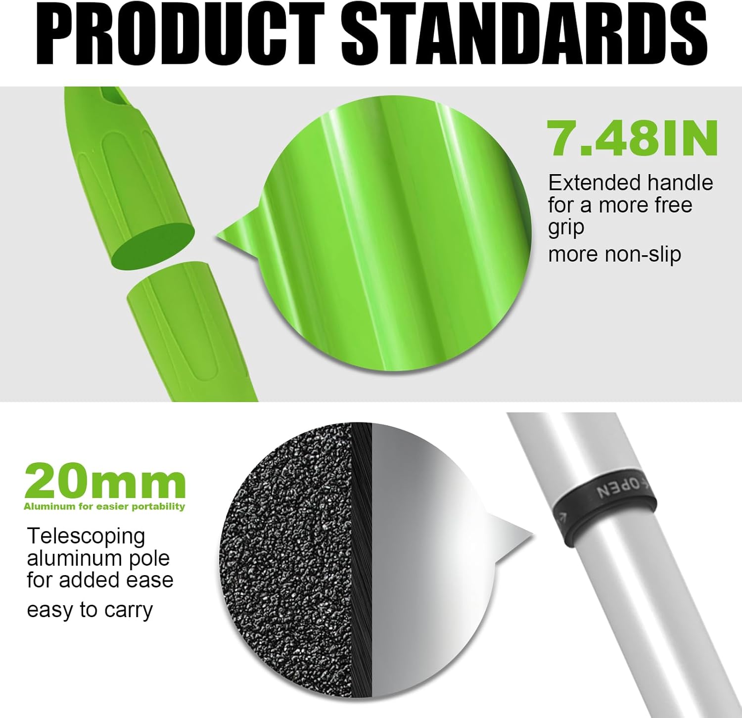 - 【Adjustable Pole】 Adjustable length of use: 27.5IN-42.1IN , which allows you to protect your back at work, and of course you can let your child try work at the smallest size