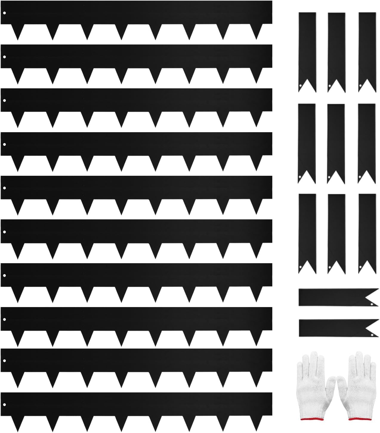 - EXTRA STABILITY: 10 Pack of 40" L x 6.5” H each, total 33 feet metal landscape edging come with 11pcs steel splicing edging stakes(8.66 inches) offer extra stability, which are securely connects the two edgings without loosening.