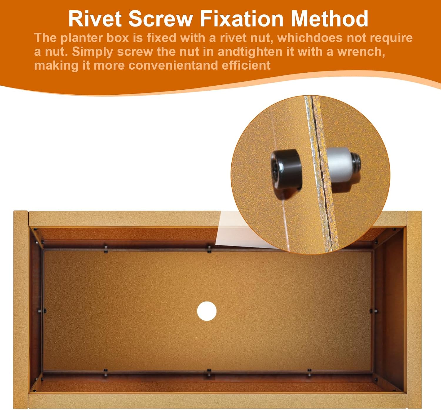 - 【Rivet Screw Fixation Method】: The planter box is fixed with a rivet nut, which does not require a nut. Simply screw the nut in and tighten it with a wrench, making it more convenient and efficient