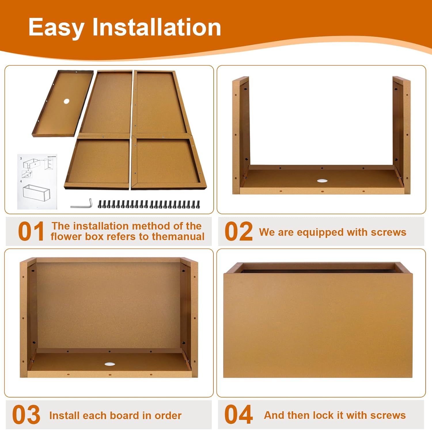 - 【Easy to Assemble】: The installation method of the flower box refers to the manual. We are equipped with screws, install each board in order, and then lock it with screws