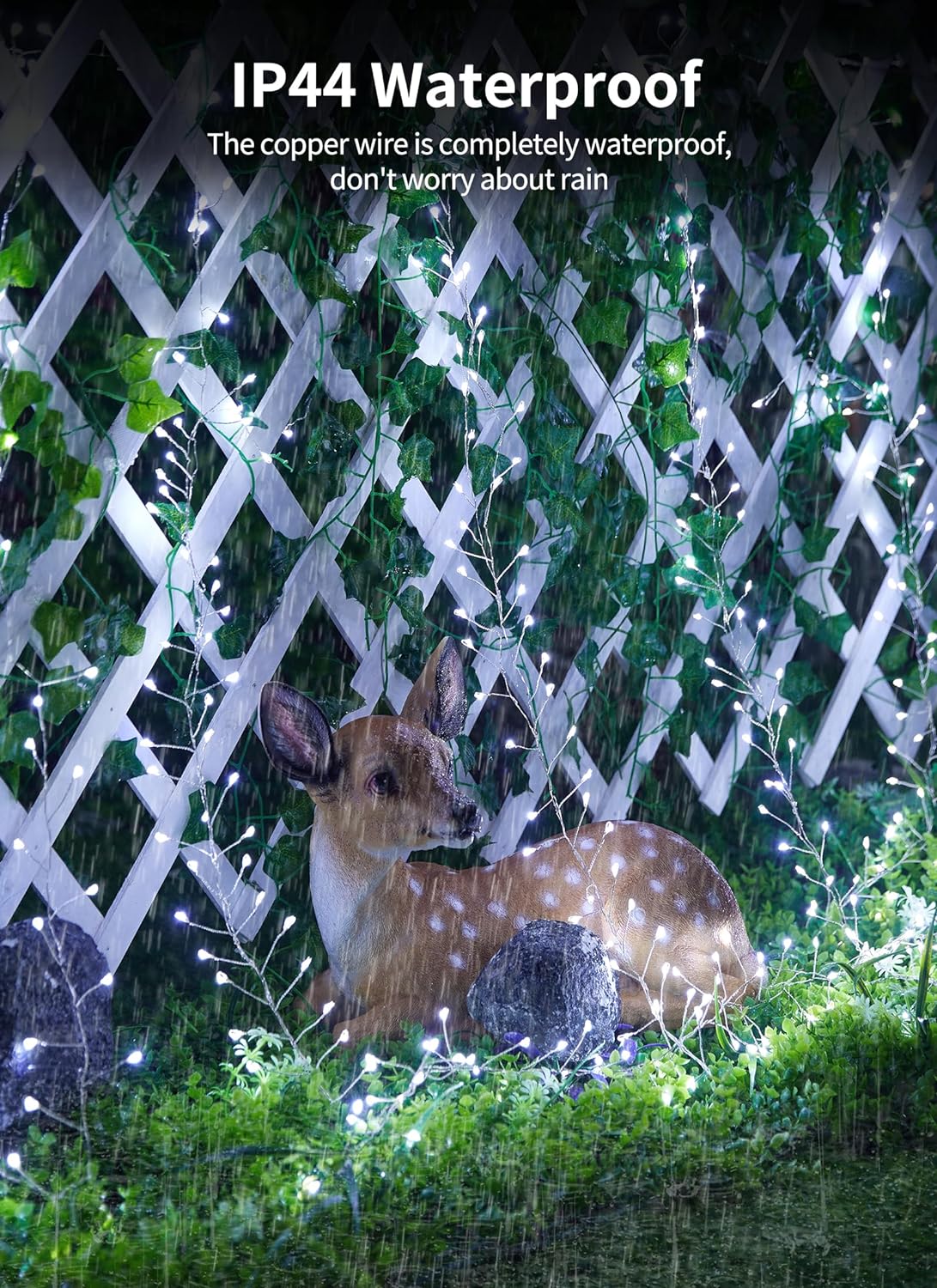 - Solar Lights Outdoor - 9.8 feet outdoor tree lights with 120 bright LED lights. The solar fairy lights produce a pure white glow, fit well in your porch, garden, yard, patio, balcony