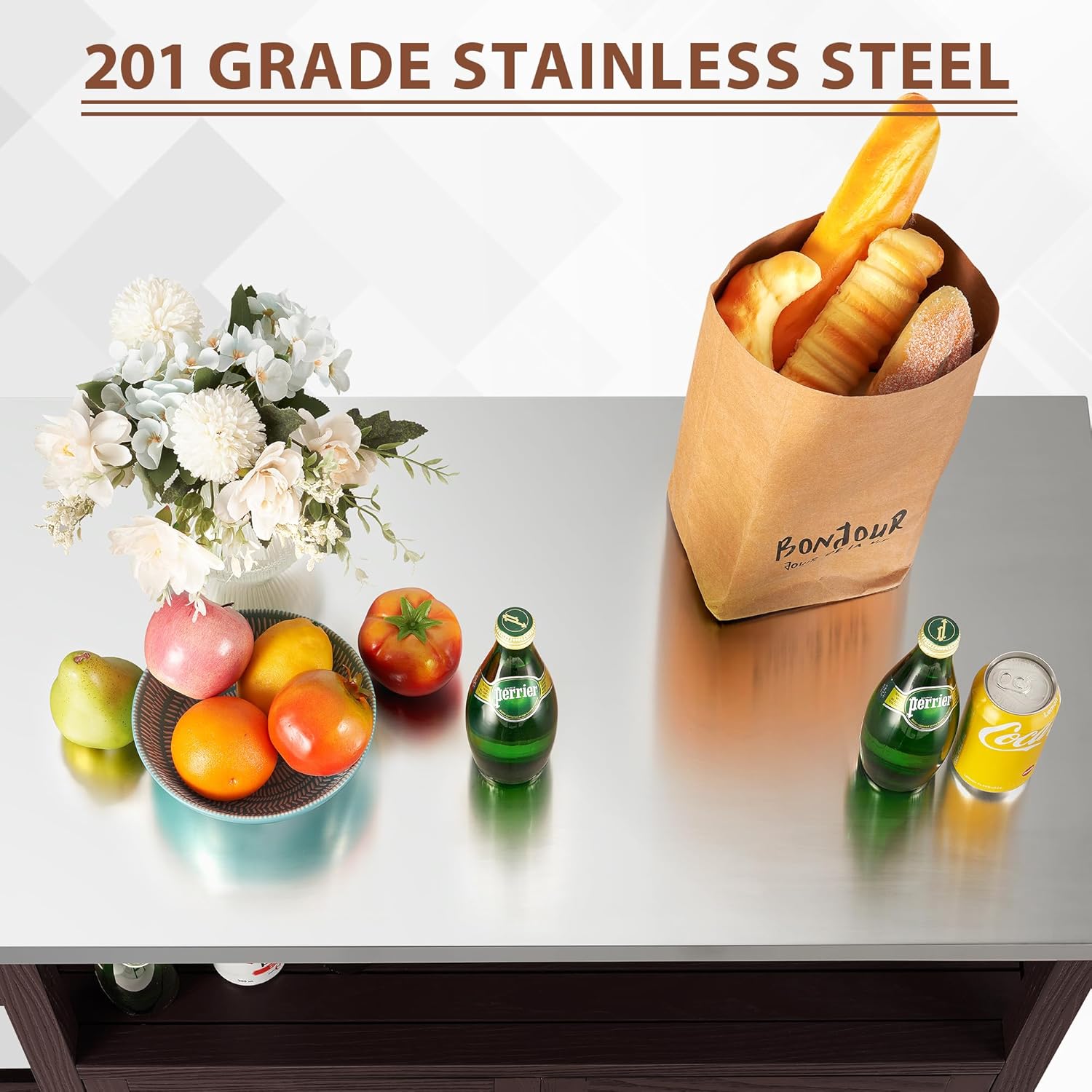 - Multifunctional design: 201 stainless steel table top provides an easy to clean and durable surface for food preparation. Three-layer storage shelves are designed for easy storage of plates, cups or some food items. The detachable shelf inside the cabinet work well for storing items of various sizes. Divided cabinets allow you to store standard 20LBS propane cylinders on one side (with holes in the back for gas line connections).