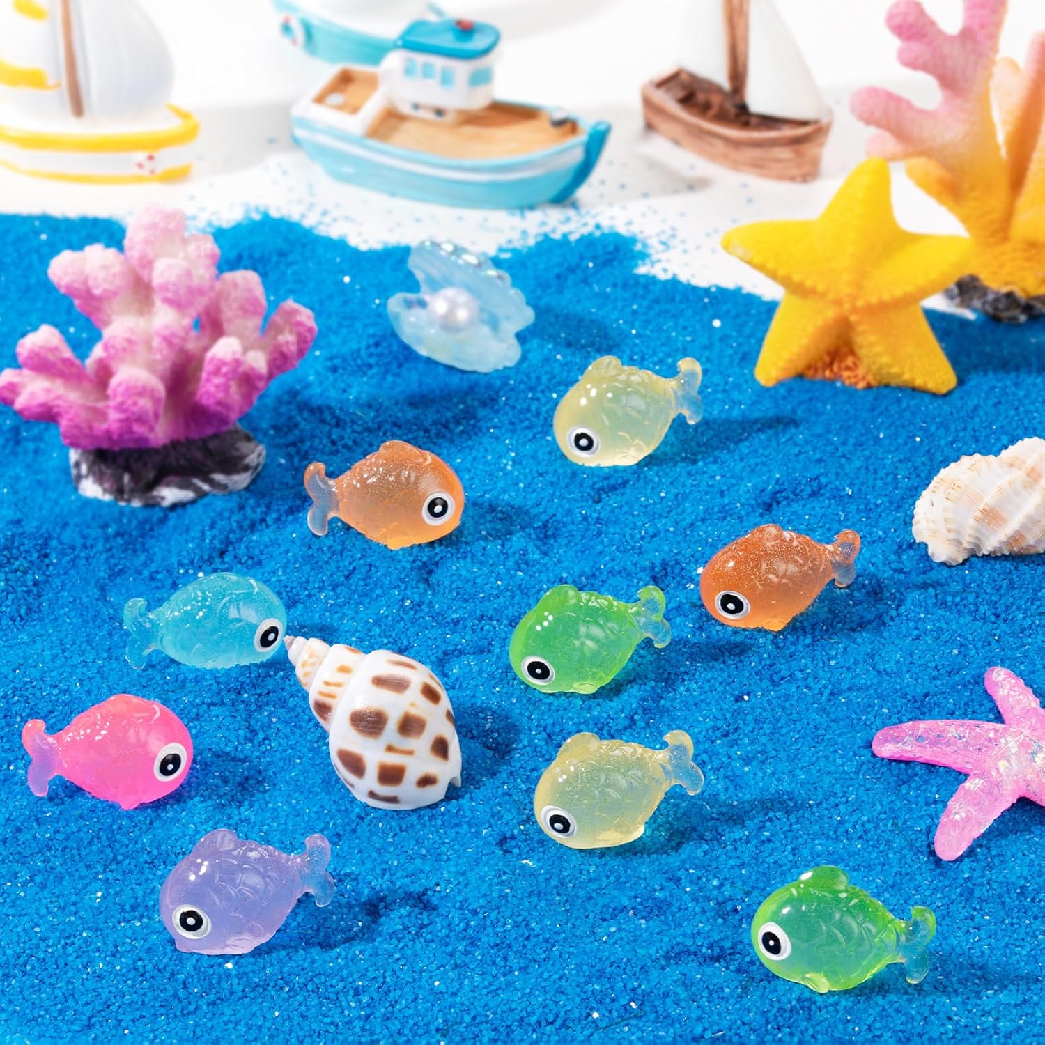 - LUMINOUS DESIGN: The mini resin fishs are made of luminous design, which can glow in the dark. Please note that the tiny fishs needs to be placed in the sun to absorb light in order to glow in the dark