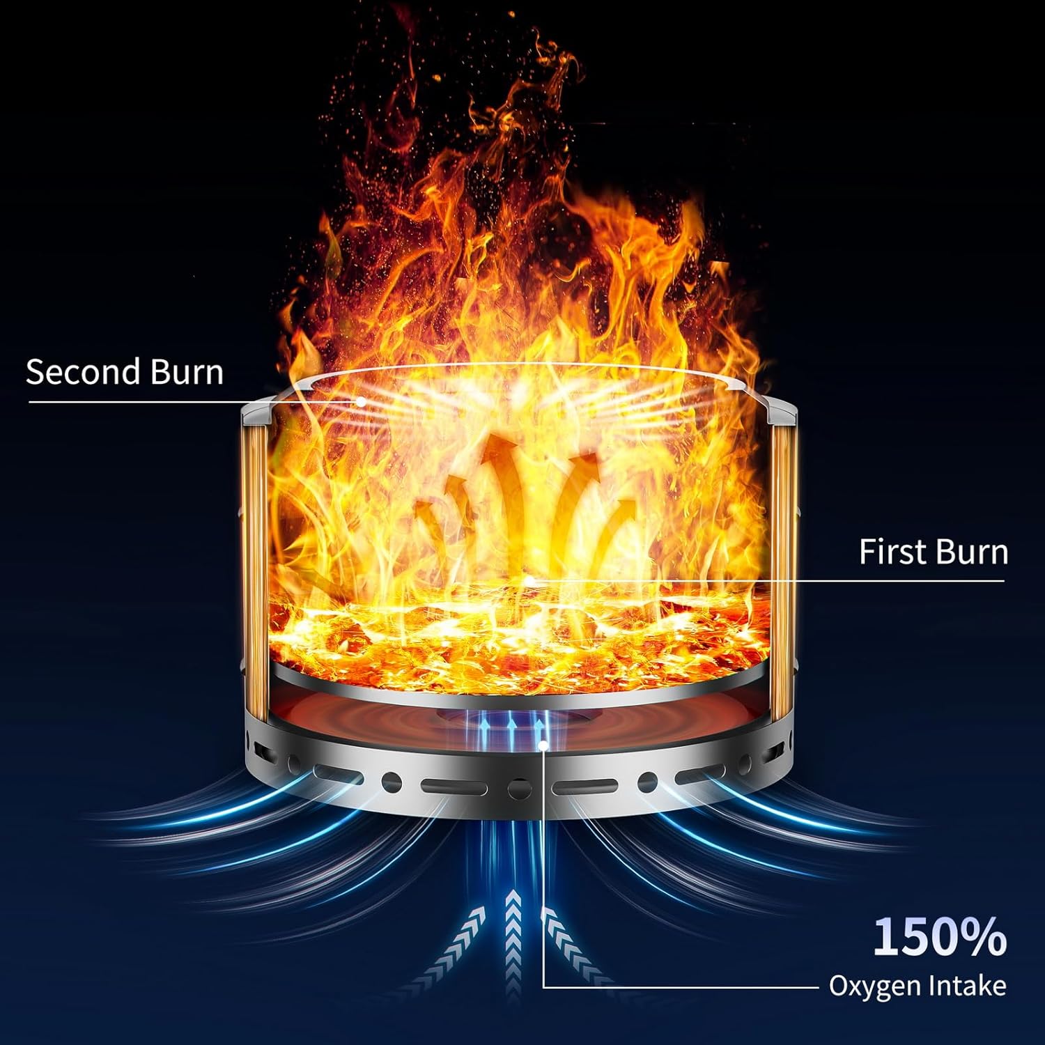 - [Portable Design]: Panovue smokeless fire pit is small and lightweight, we send a waterproof cover which can also be used as a carry bag, so you can carry the smokless fire pit easily. You can light a fire wherever you go - whether you go camping, have a party ,go to beach, or backyard.