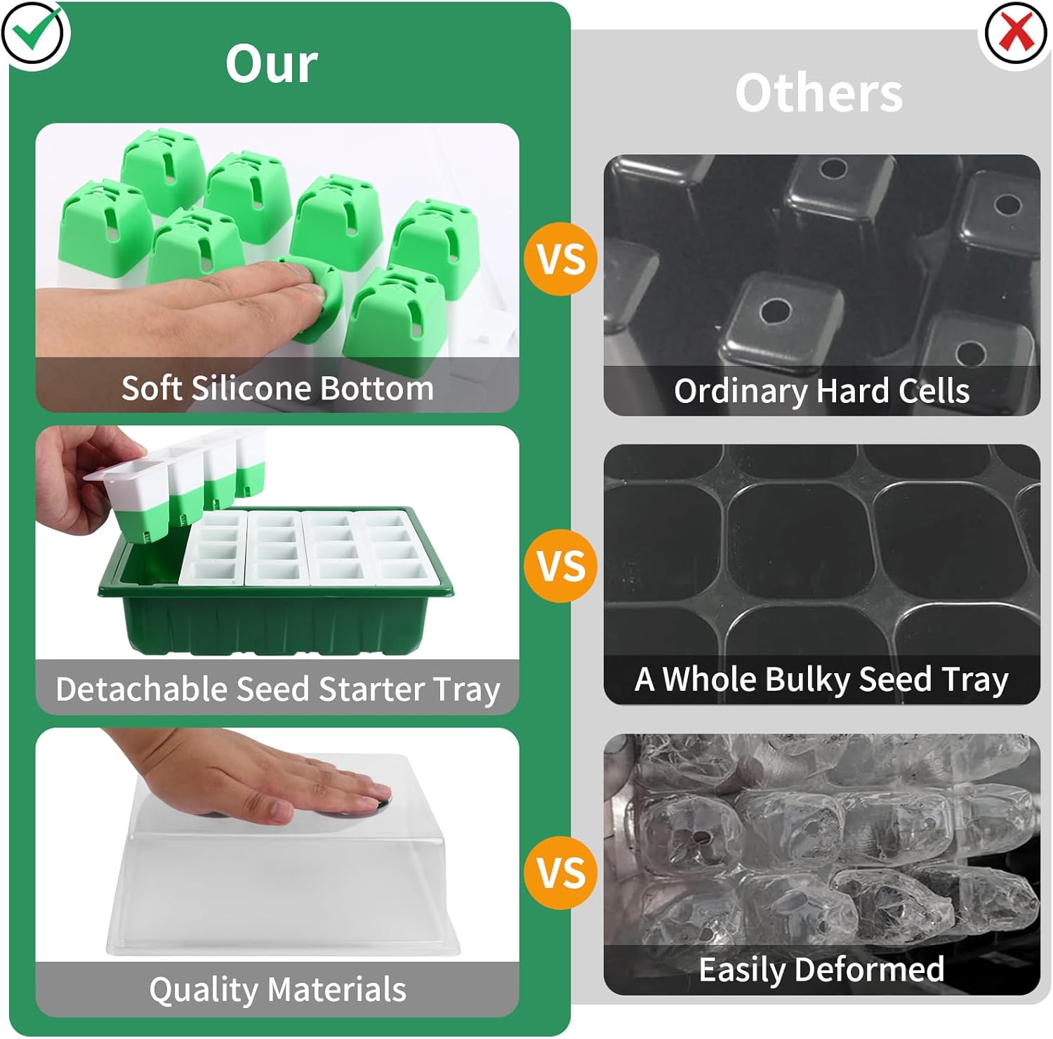 - Special Feature : Detachable Seed Starter Tray, Lightweight, Drainage Hole, Aeration & Soft Silicone Cells