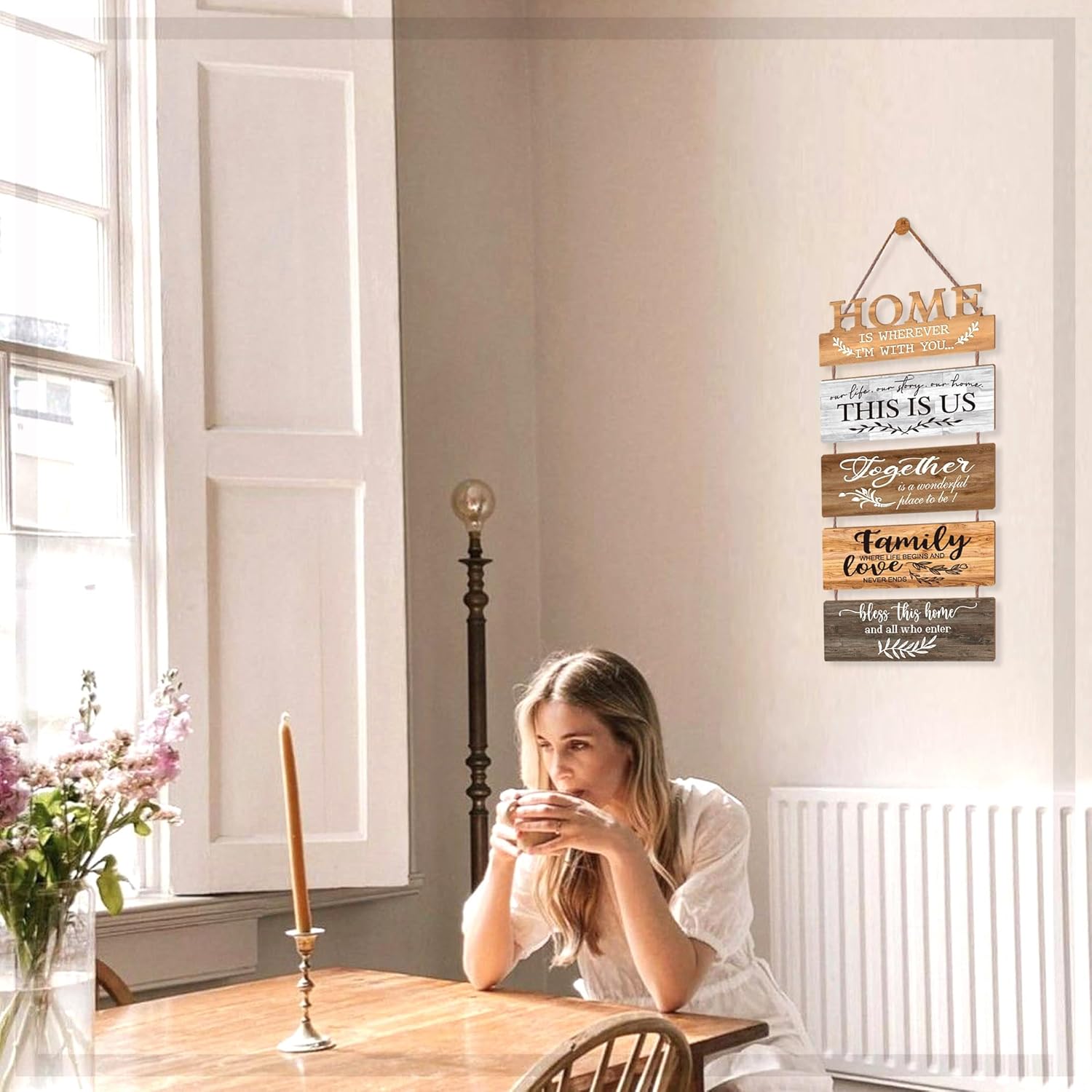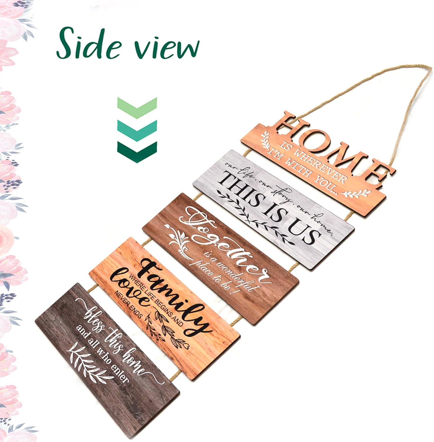 Wooden Collage Panels Home Affirmations Wall Sign- Wall Plaques for Living Room,Bedroom,Dining Room,Bathroom - Multicolor Rustic Family Farmhouse Wall Decor 5pcs