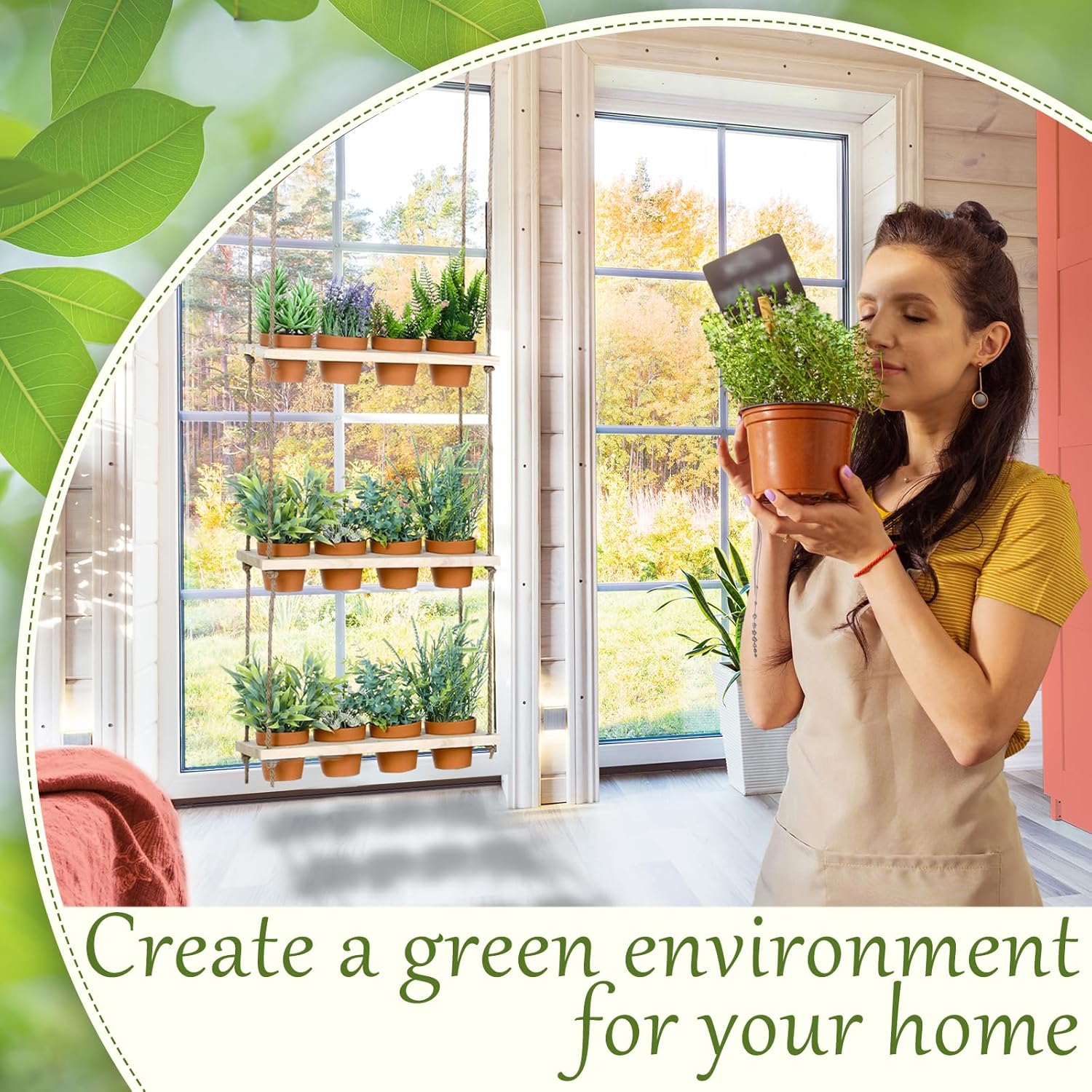 - 3 Tiered Hanging Herb Garden Set: the package includes 1 piece of 3 tiered hanging vertical planter shelf, suitable for decorating kitchens, living rooms, offices, balconies and other places, and 12 pieces of plants pots, ideal for growing herbs, cacti, and so on; Please note that we provide you with non marking nails and hooks for easy hanging