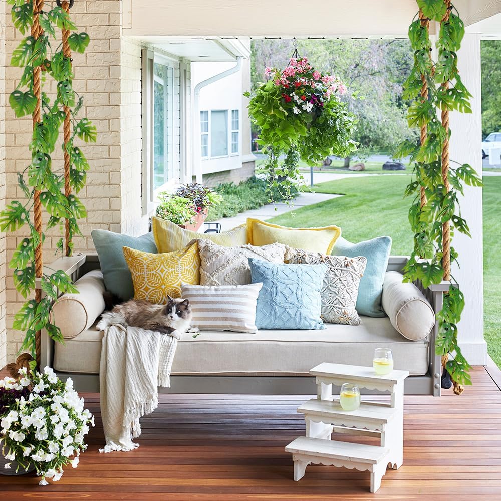- Hanging Palm Vine Garlands Decorations: Fake palm vine garland is not only suitable for home decoration, but also as an ornament for walls and doors, adding a green color to festivals and celebrations.This palm vine can decorate your party table, mantel, wedding arch or backdrop, baby shower, window, cabinet, etc,.Fake Faux greenery palm vine garlands are perfect home, terrace, office, garden,windowsills or other indoor outside place decoration.