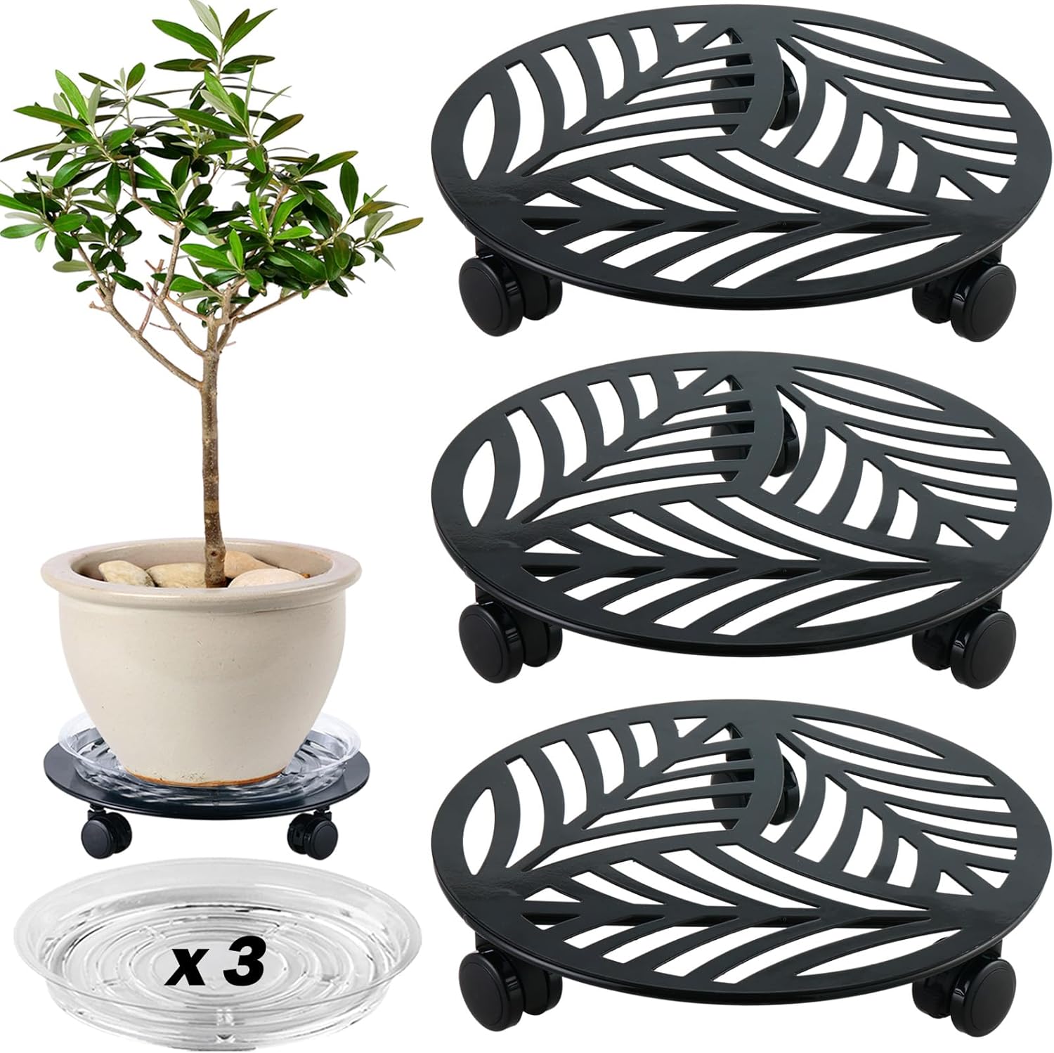 - Clear Plant Saucers & Protect Your Floor: The 3 packs of clear plastic plant saucers help catch the water and prevent getting wet when watering. These plant saucers on wheels will help keep a clean floor and avoid water stains. Each wheeled metal plant caddy holds your heavy plant pots while add an addition to your home decor.