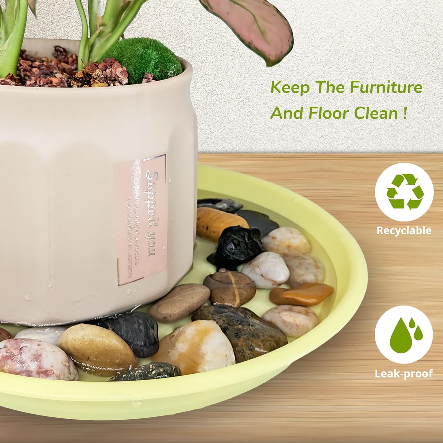 - Optimal Plant Drainage: These plant pot saucers help you catch water from the plant pot drainage hole. help protect wooden floors, carpets, and tabletops from water drainage and soil spillage. You can decorate the plant drip tray with colorful pebbles