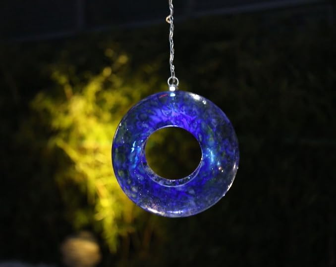 Yinns Mosaic Bird Feeders for Outside Hanging Fly Through Bird Feeder with Round Shape Solar Birdfeeder for Yard Garden Decor Bird Lvoers Gifts, 8-Inch Bule