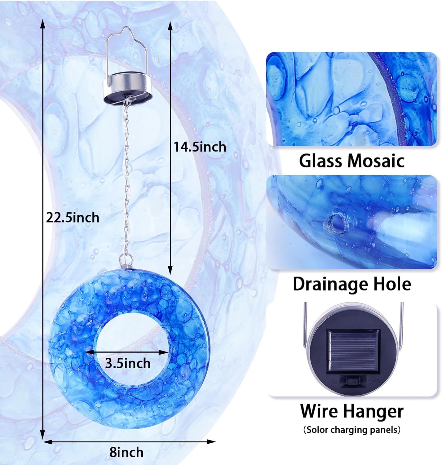 - Hanging Bird Feeder:Mosaic hang bird feeders for outdoors is made of strong mortar and glass. Birds can eat from the rim or hop inside during bad weather