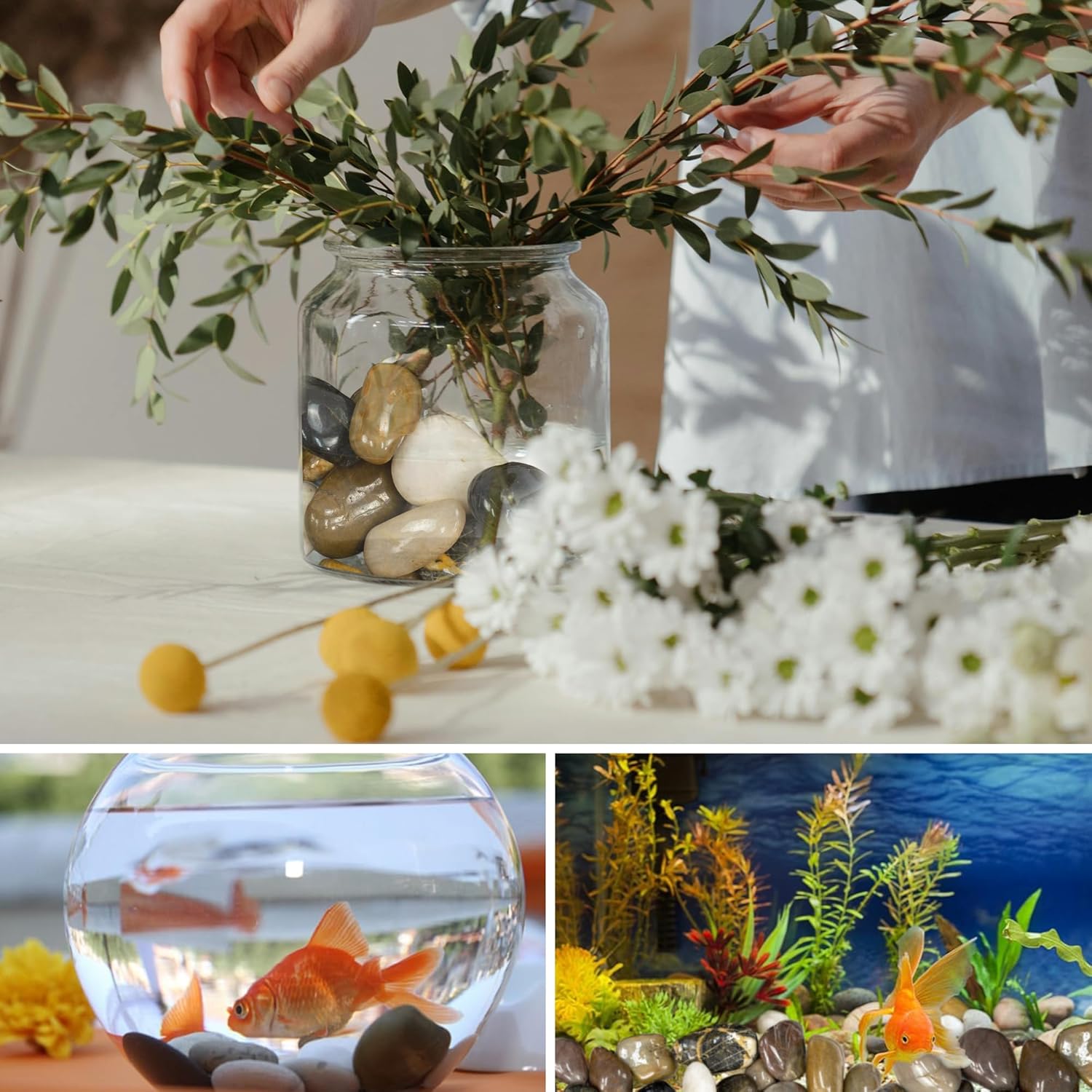 - Multi-Purpose Landscaping: Not just for plants and aquariums, these versatile stones can be used for home decor as well. Use them in vases, candle holders, or as table centerpieces to create a unique and eye-catching display