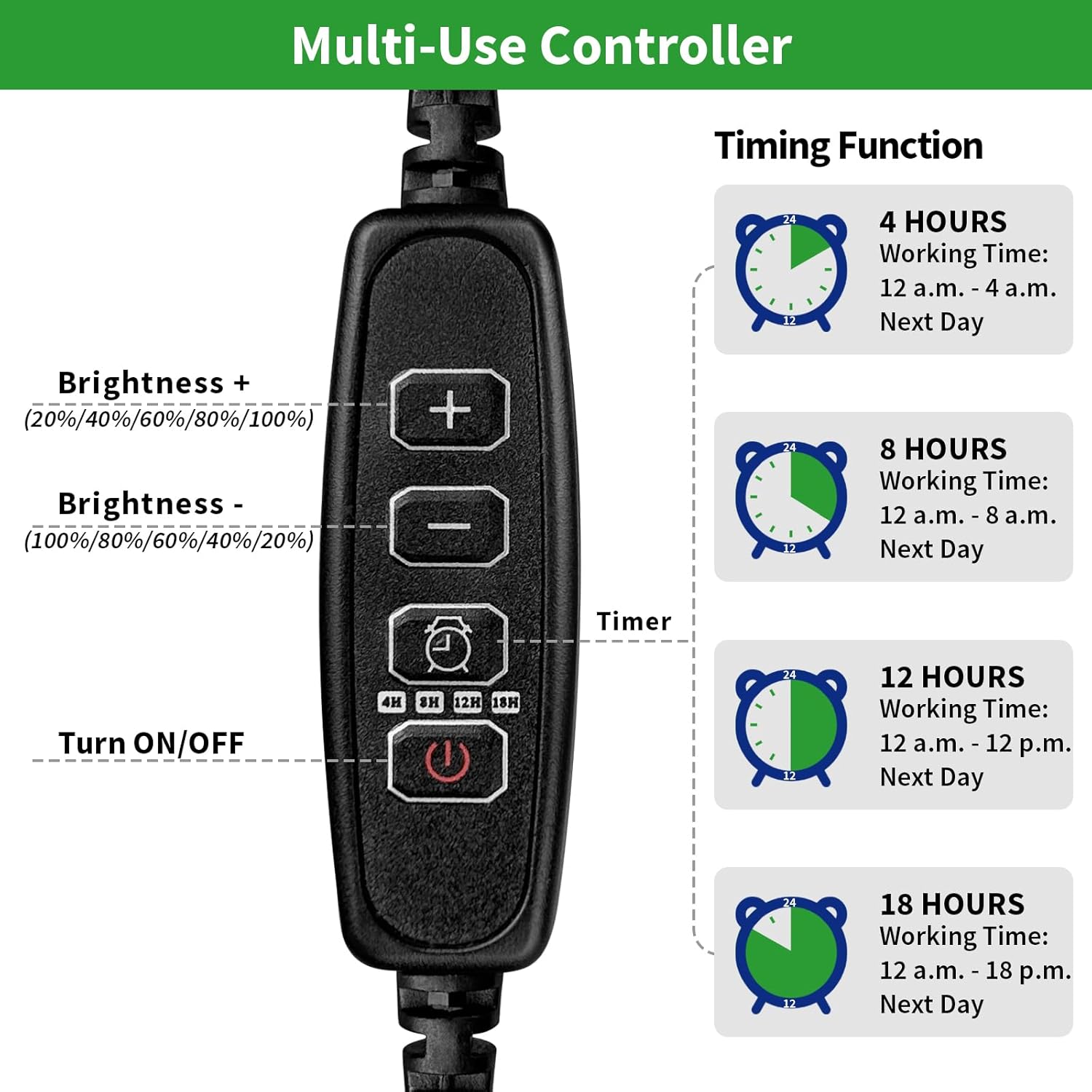 - 4-Level Timing Settings and 5-Level Brightness: Our seed starting trays offer customizable lighting schedules with options for 4, 8, 12, and 18-hour cycles, ensuring that your plants receive the appropriate amount of light at different stages of their growth. Additionally, the 5-level brightness control allows you to adjust the light intensity to meet specific plant light requirements.