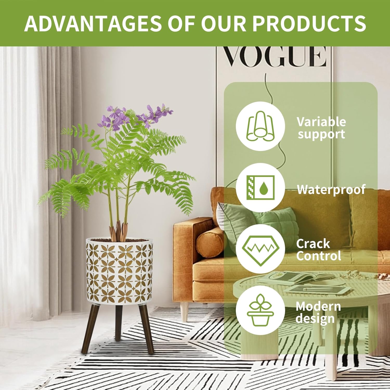 - ✅Size -10 inches standing planter in diameter, 9 inches in height, with oak legs for a total height of 18.5 inches.